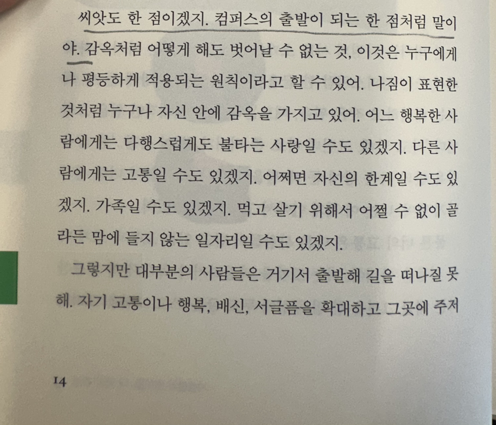 이 부분을 읽다가 그래도 나는 컴퍼스의 한 점을 찍었구나. 여기서부터 확장하자. 라는 생각이 들어 지금 하고 있는 일에 더 애정이 솟았다.