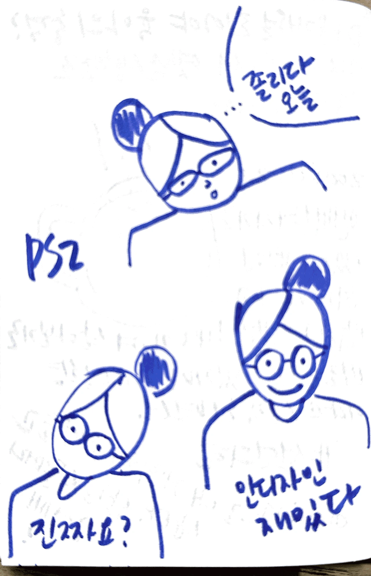 어제 워크샵 갈 때 가져가서 집에 두고 왔잖아. 바보야.