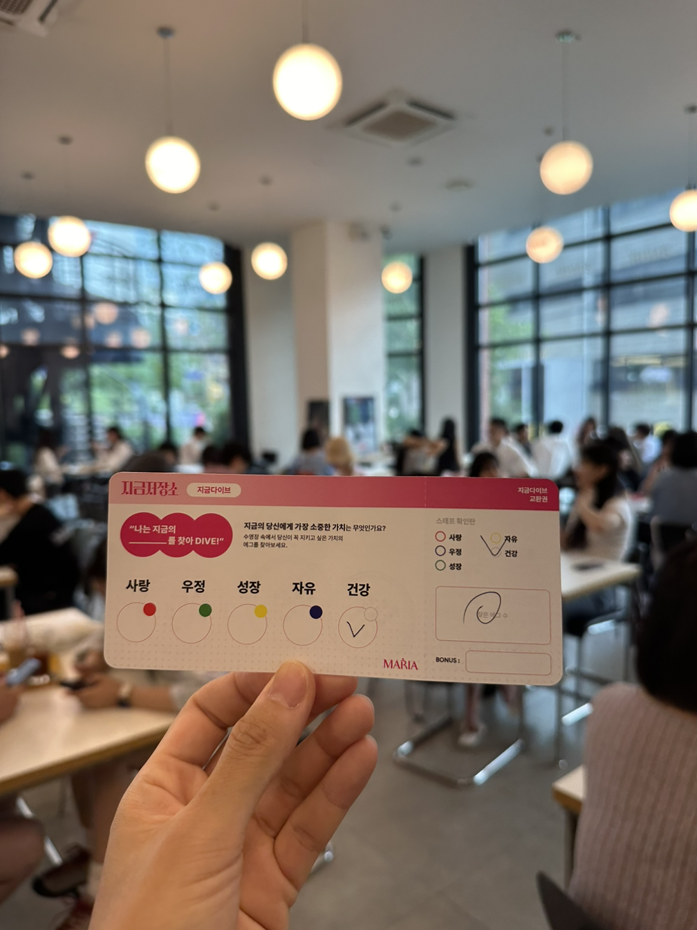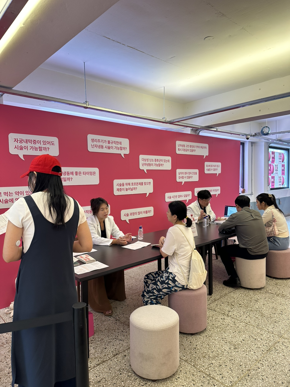 - 마리아병원이 하는 난자 동결 주제의 팝업 <지금 저장소>에 다녀왔다. 성수동 한복판이라 그렇기도 하겠지만, 20대 여성 & 20대 커플들의 참여가 엄청났다. 10분 넘게 줄을 서서 이벤트에 참가할 수 있었다. (아기띠를 메고 서 있는 내내 아기가 울었는데, 기다리시는 분들에게 그게 어떻게 보였을까?)