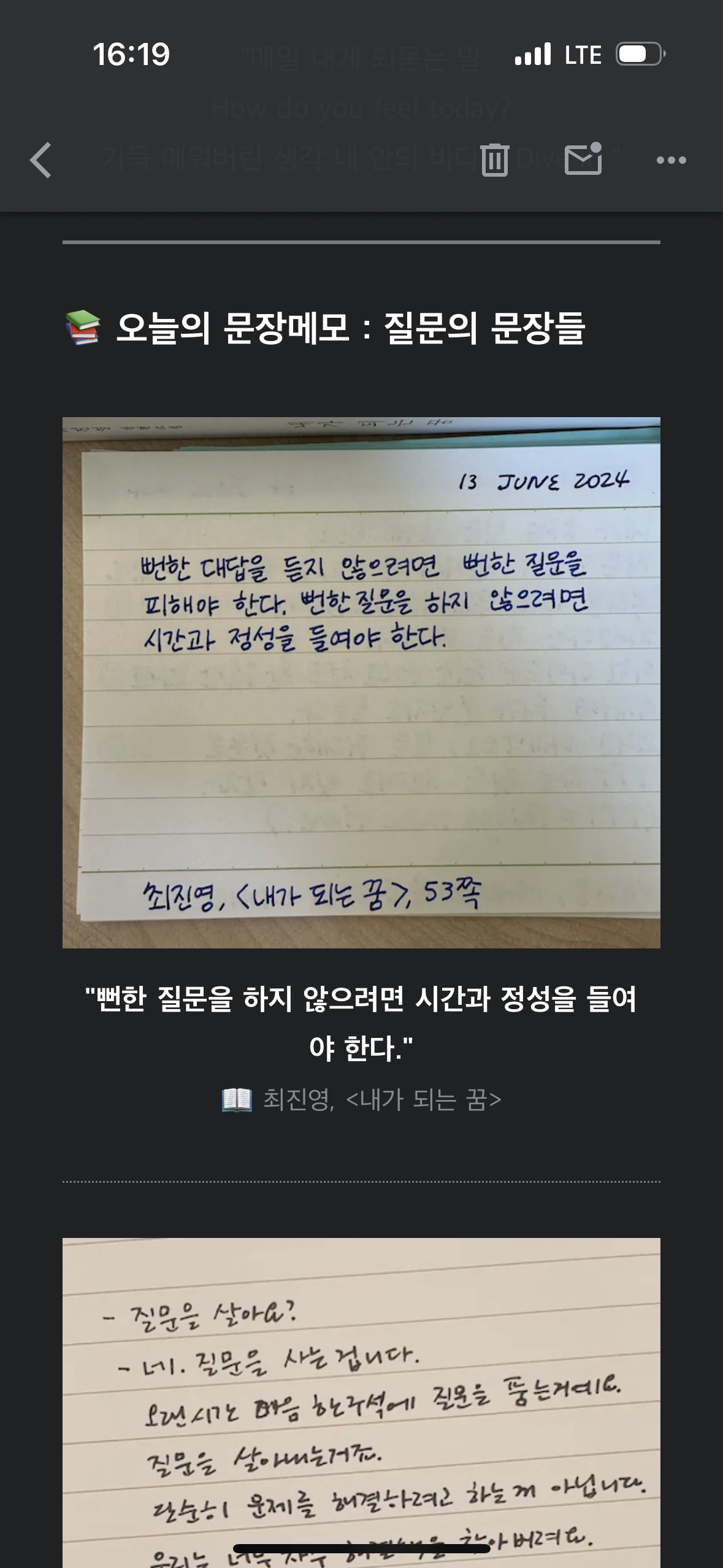 (제가 1년 반동안 2주에 한 번씩 발행하고 있는 뉴스레터입니다. 주제별로 손글씨로 쓴 문장을 보내드립니다.)