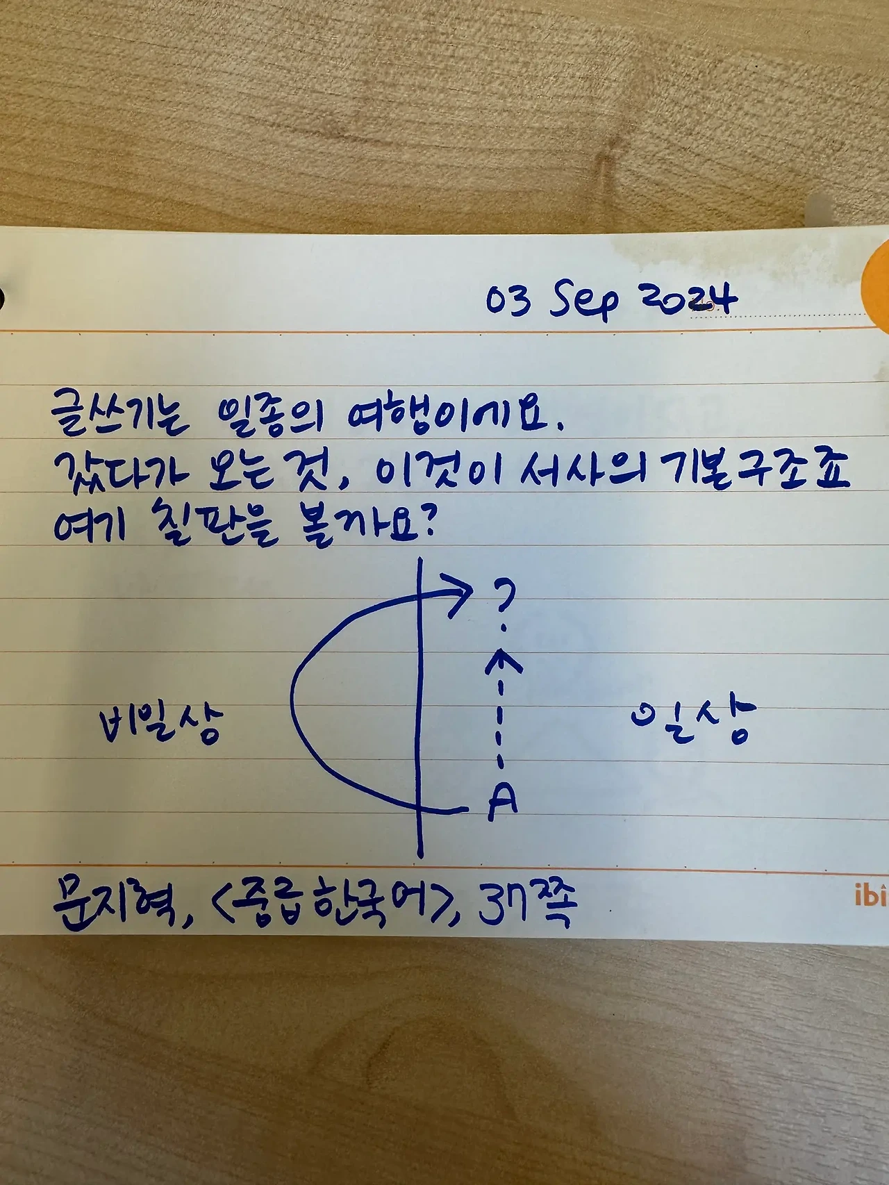 글쓰기는 일종의 여행이에요. 갔다가 오는 것, 이것이 서사의 기본 구조죠.