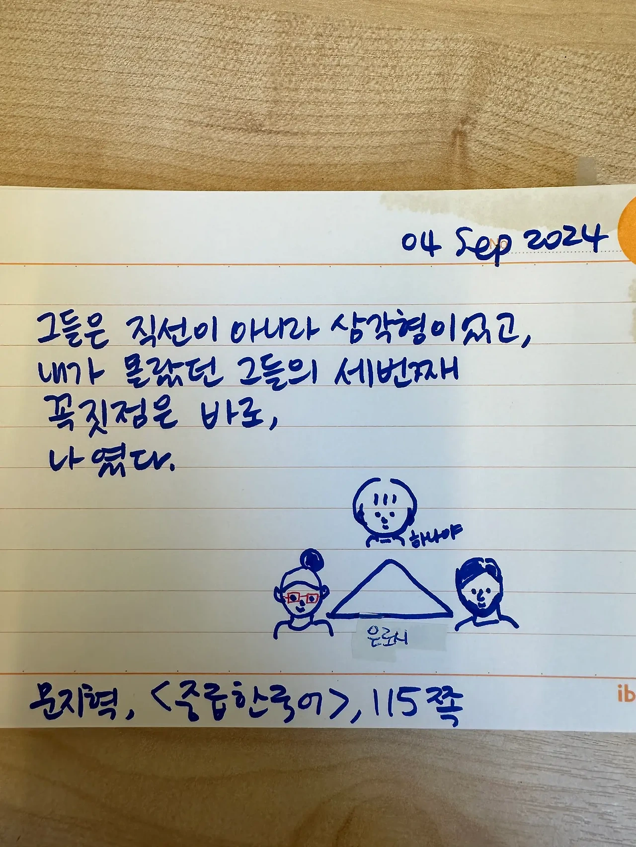 그들은 직선이 아니라 삼각형이었고, 내가 몰랐던 그들의 세번째 꼭짓점은 바로, 나였다.