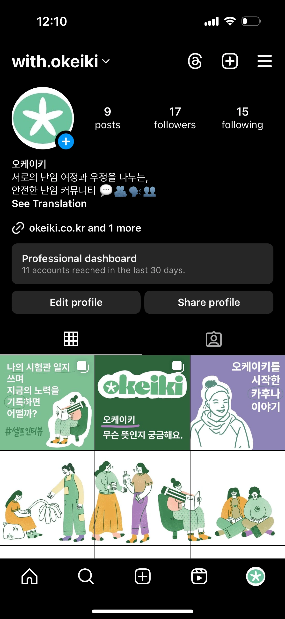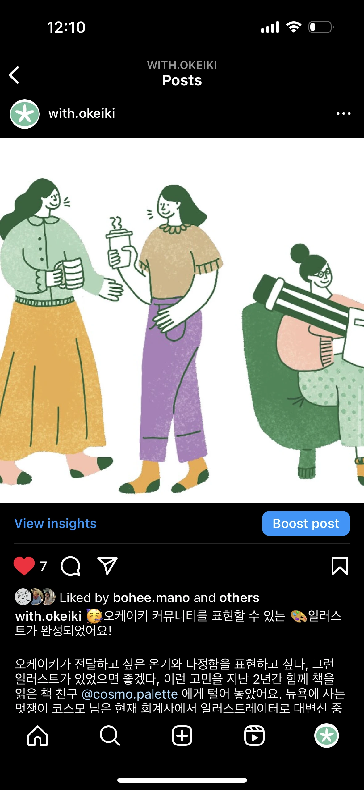 - 디자이너 원 님이 인스타 피드 디자인을 만들어 주시면 시작해야지, 하고 있다가 에라 모르겠다, 잘 못해도 과정을 보여드리자는 마음으로 인스타그램 @with.okeiki에 홈페이지에 있던 내용 몇 개를 올렸다. 이제 시작이다. 나다운 문체로 자연스럽게 말 걸자. 일러스트가 생겨 더 힘을 낼 수 있었다.