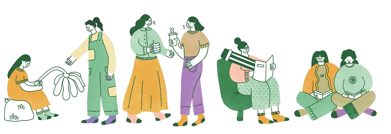 - 회사 소개 페이지에 사용할 일러스트를 완성했다. 뉴욕에 사는 일러스트레이터님과 작업하니 좋은 점도 많다. 1) 시차가 있다 보니 피드백 전 숙고할 시간이 저절로 생긴다. 성격 급한 나는 가끔 바로 떠오르는 느낌을 전달하고 말을 주워 담아야 하는 순간이 생기는데, 시차 덕분에 이런 일이 차단된다. 2) 한국은 추석 연휴에 모두 쉬었지만 뉴욕에서 코스모님은 그림을 그려 주셨다. 천천히 해야지, 싶다가도 아무것도 되지 않고 있는 것 같다는 불안이 밀려오는데 추석 연휴 내 코스모 님과 일러스트를 완성하니 쉬면서도 불안하지 않았다.
