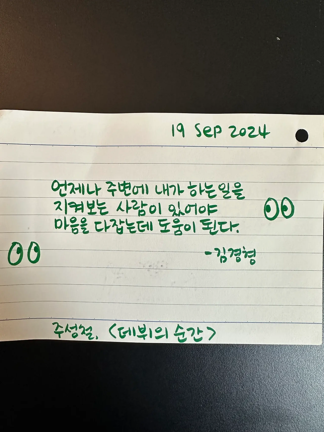 언제나 주변에 내가 하는 일을 지켜보는 사람이 있어야 마음을 다잡는데 도움이 된다. (김경형)