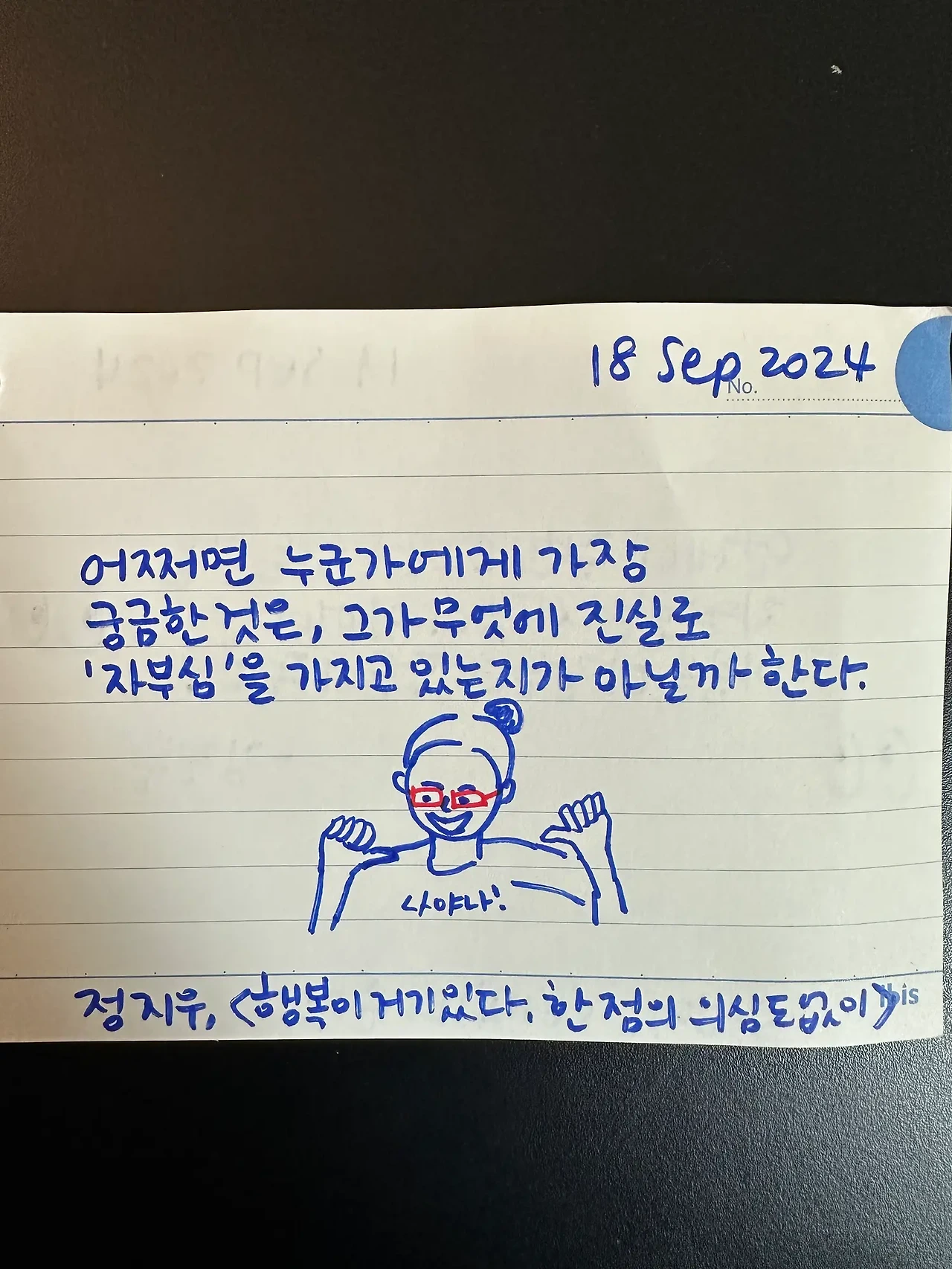 어쩌면 누군가에게 가장 궁금한 것은, 그가 무엇에 진실로 '자부심'을 가지고 있는지가 아닐까 한다.