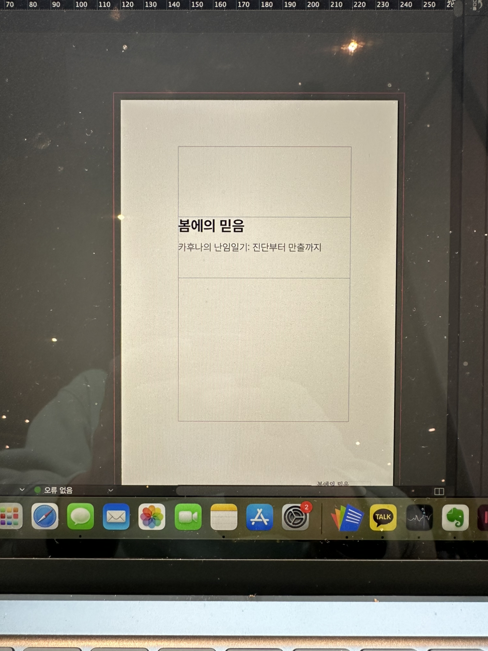 - 독립출판할 내 난임일기 원고 1, 2, 3장 중 2장까지 완성했다. 진짜 인쇄소에 넘길 수 있을까? 책 친구며 회계사에서 일러스트레이터로 전향하신 리라님에게 표지 그림 의뢰도 했다. 정말 이번 주에는 인쇄소에 넘길 수 있을까? 이렇게 급하게 하고 싶진 않았는데...