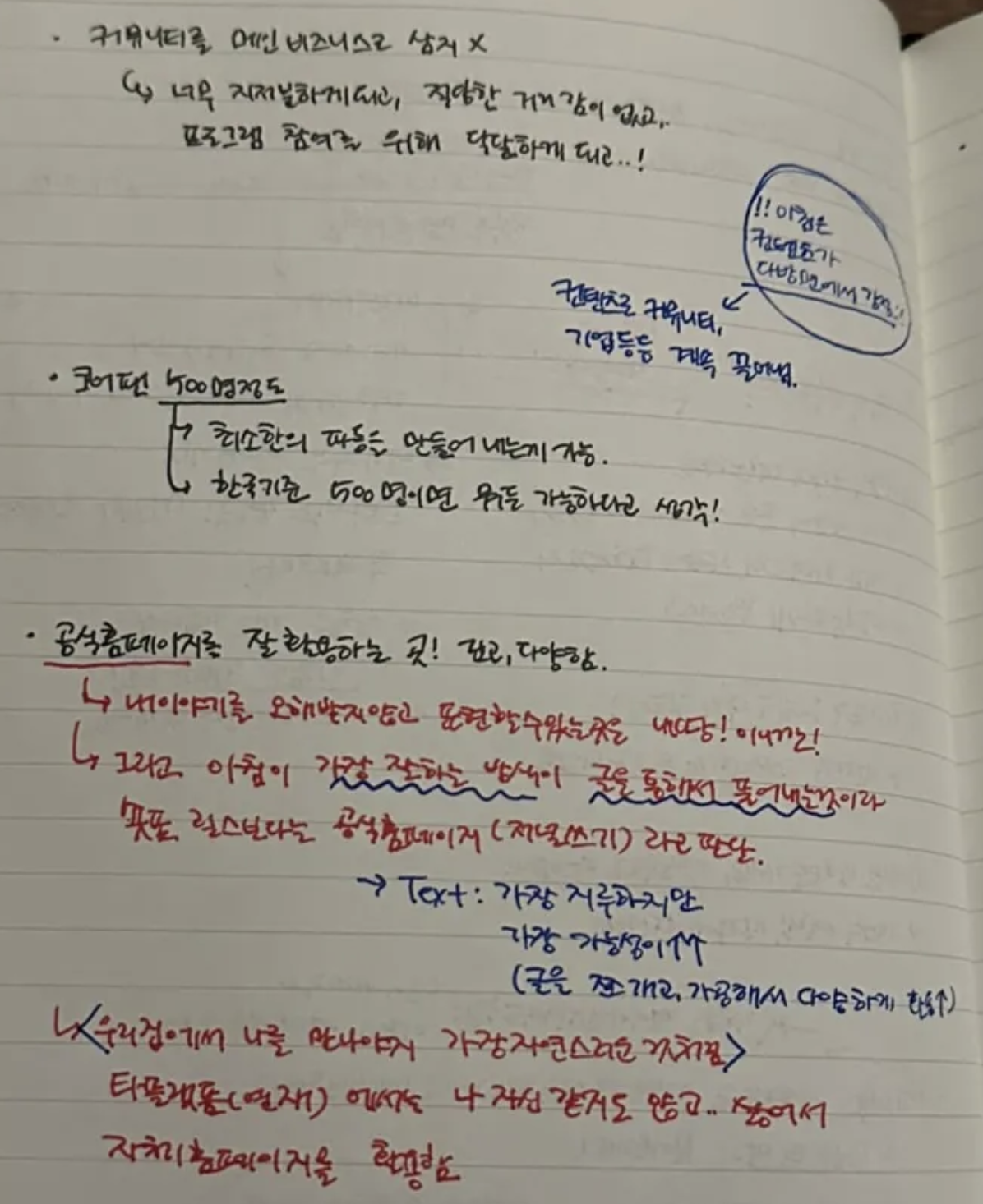오케이키와 함께 하고 계시는 디자이너 원님이 Achim 매거진 대표님과의 대담에 가서 듣고 온 인사이트를 공유해 주셨다. (역시 UX디자이너라 심지어 노트 필기도 읽기가 너무 좋음)