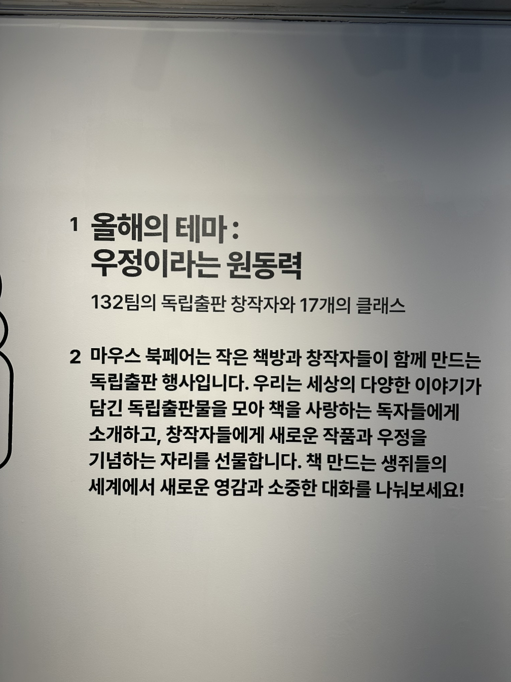 내 책을 냈다, 페어에 나왔다는 성취감에 '첫'이라는 시작의 도파민이 가세했다. 혼자보다 여럿이 성취하는 것이 훨씬 신나고 즐거움의 깊이가 깊었다. 나도 기쁘지만, 신난 동료를 보는 건, 그건 정말 살맛 나는 일이다. 그래서 내년 페어를 위해 두 명을 더 영입했다. 함께 쓰고, 함께 책을 내고, 팔고, 추억을 쌓는 것, 혼자보다 훨씬 신나는 일이다. 이 기쁨을 아끼는 사람들과 더 나누고 싶었다.