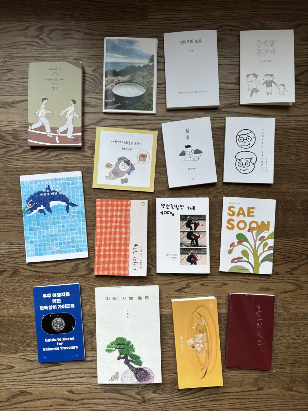 부스마다 매력이 퐁퐁 터졌다. 창작자들의 눈빛은 또 얼마나 생기 넘치는지! 분명 이 작업물로 생계를 전부 책임질 만큼의 경제적 보상은 없을 것 같은데도 활기가 대단했다. (그렇지 않기 때문에 나오는 명랑함이었을까?) 알려지지 않은 멋진 창작자들이 이렇게 많다니! 수면 위로 올라온 창작자들(예를 들면 교보문고에 가면 볼 수 있는)만 접하고 살았는데, 수면 아래 이렇게 멋진 세계가 있었구나. 내가 느끼는 이 흥분된 기쁨은 꼭 스노클링 했을 때 느낀 즐거움 같았다. 뭐가 있을까 싶게 잔잔한 수면 아래로 알록달록 열대어, 산호, 거북이, 돌고래까지 보는 기쁨을 누렸다.
