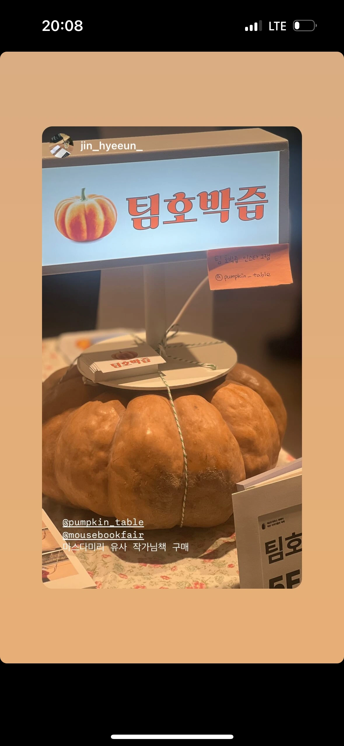 (*부스 명이 팀호박즙이라서 늙은 호박을 부스 데코로 이용하고, 책을 구매하신 분들께 호박즙을 증정했다.)