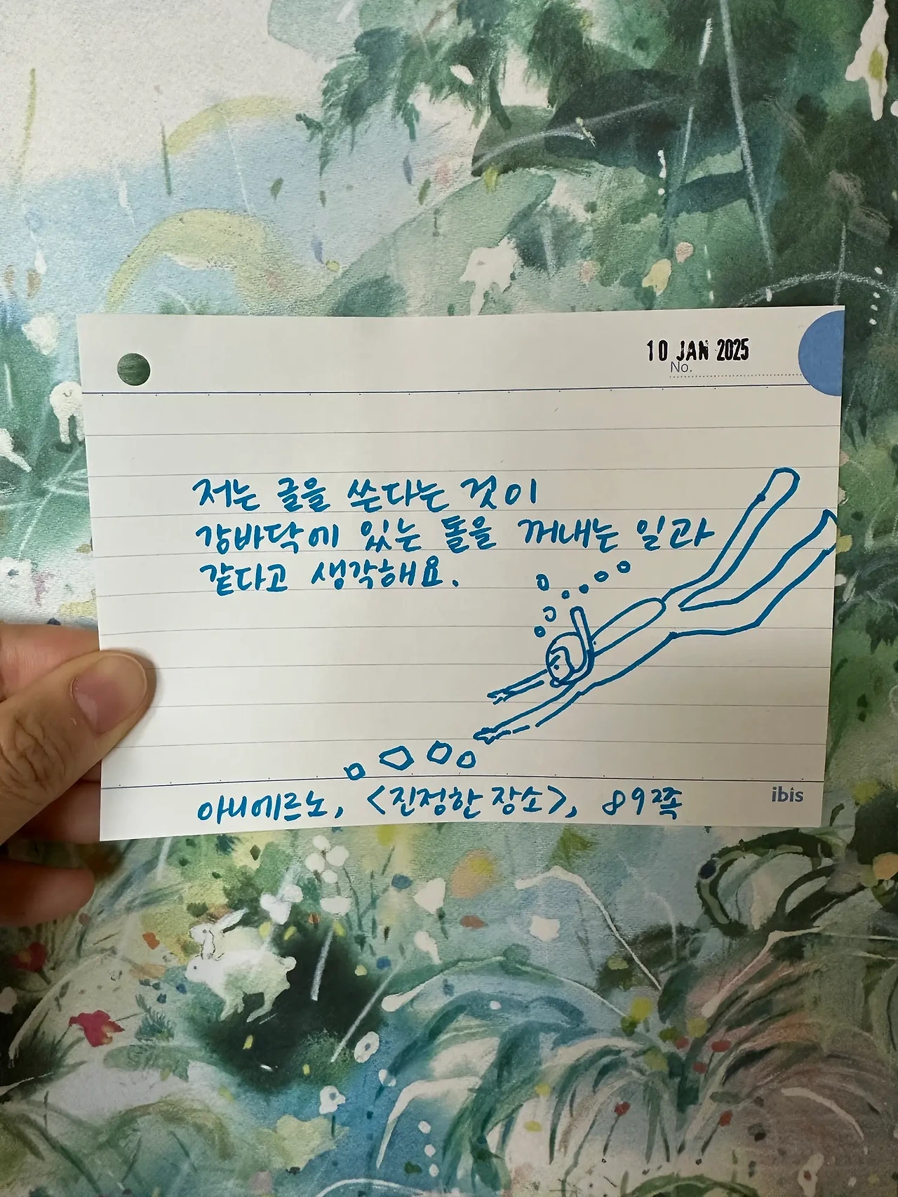 저는 글을 쓴다는 것이 강바닥에 있는 돌을 꺼내는 일과 같다고 생각해요.
