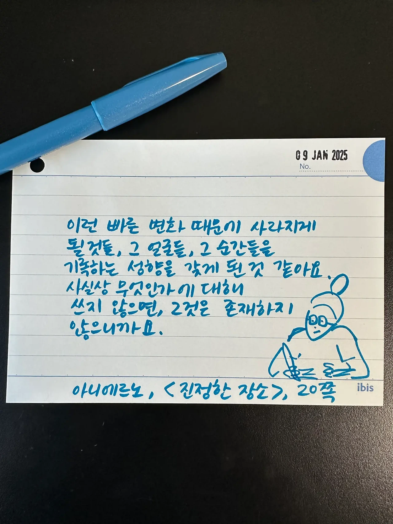 이런 빠른 변화 때문에 사라지게 될 것들, 그 얼굴들, 그 순간들을 기록하는 성향을 갖게 된 것 같아요. 사실상 무엇인가에 대해 쓰지 않으면, 그것은 존재하지 않으니까요.