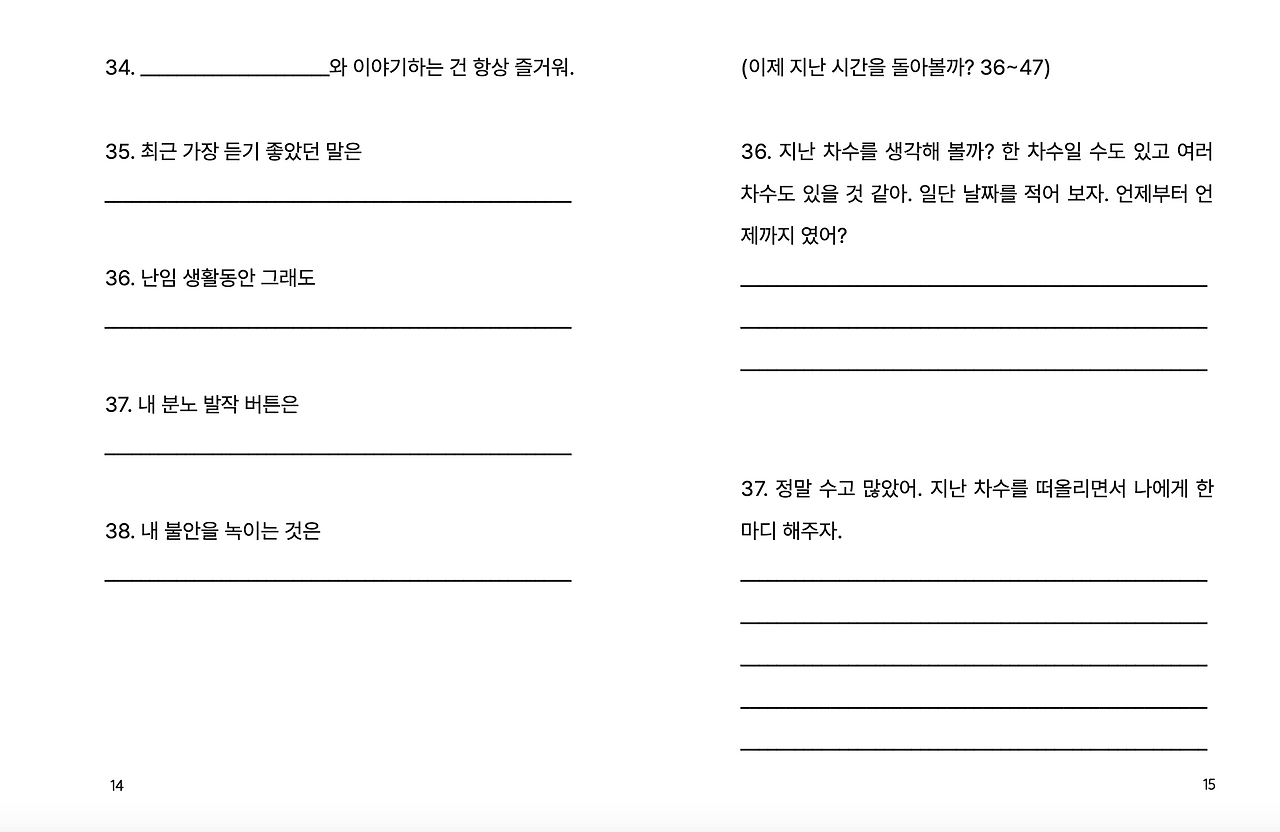 답답한 마음이 계속 쌓이는 난임 생활. 스스로 질문하고 답하며 각자에게 맞는 난임 극복 방법을 찾아가면 좋겠다고 생각해서 질문지를 만들고 있었다. 근데 이거 11월에 기획해서 아직도 끝내질 못하고 있네. #1인기업의고충 이라고 해야 하나? 스스로에게 프로젝트를 주고 실행하니 마감도 계속 미루게 된다.