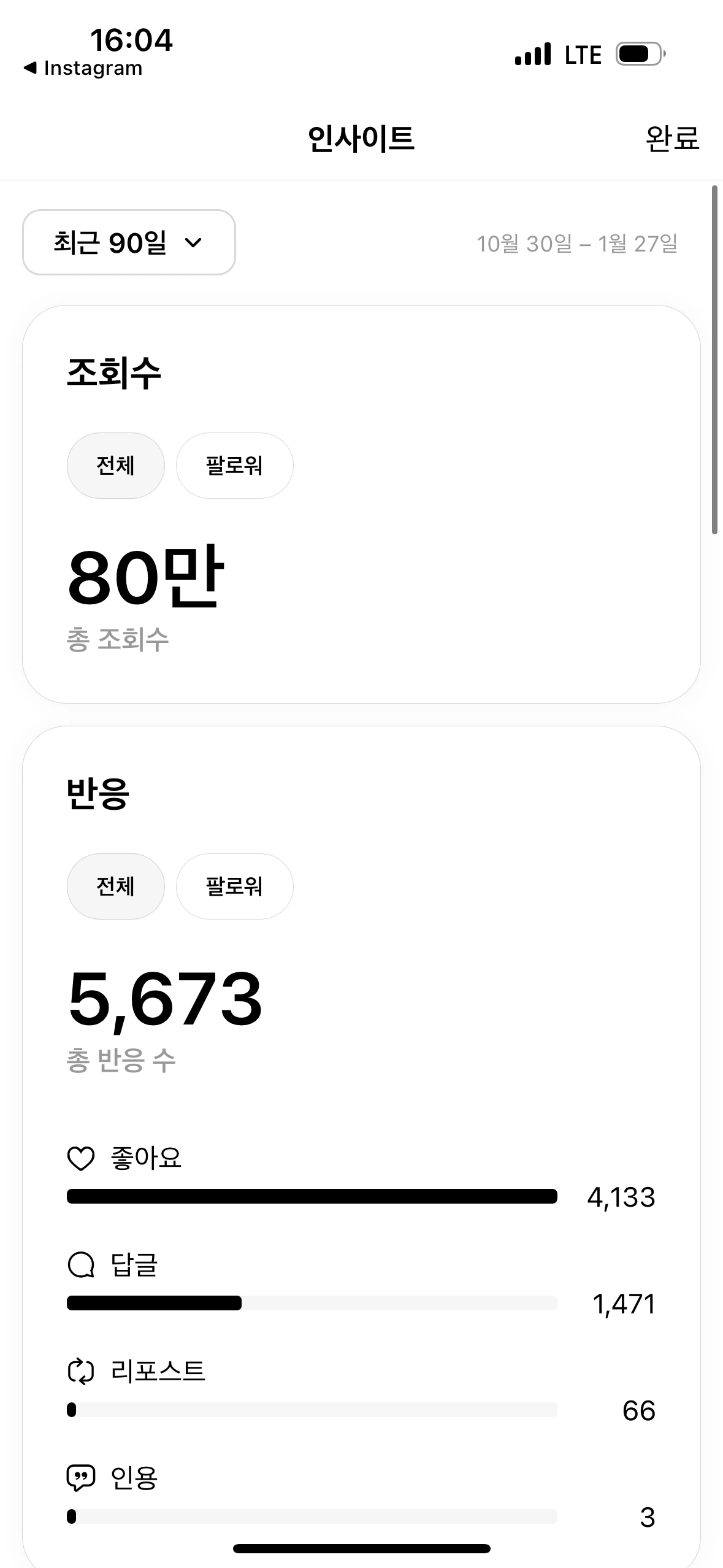 - 인스타 팔로워는 400명, 홈페이지 가입은 200명 정도에 비하면 스레드가 더 빠르게 올라왔다.