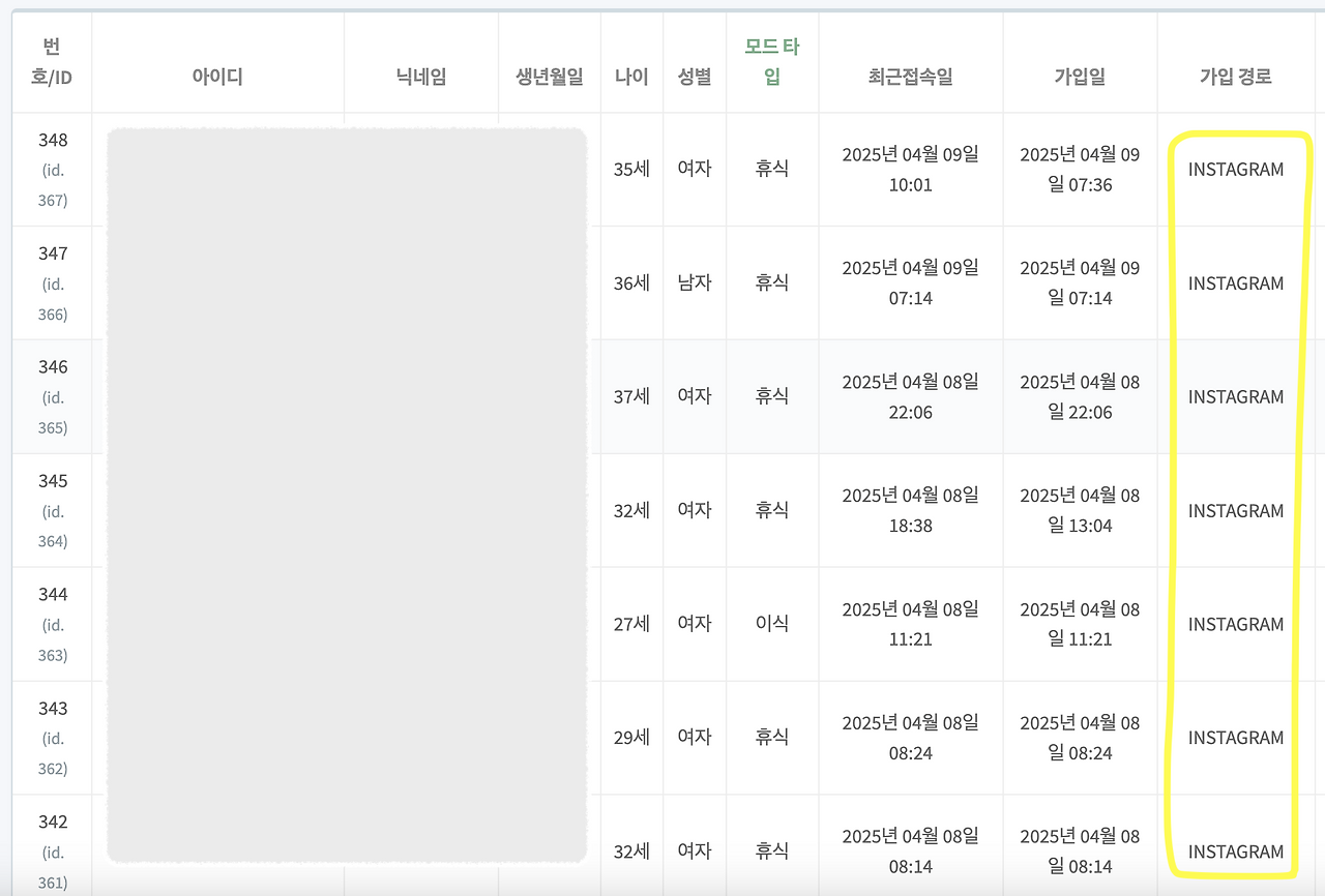 - 오케이키 웹 가입자 수는 as of now 348명이다. 최근 가입 경로는 대부분 인스타그램.
