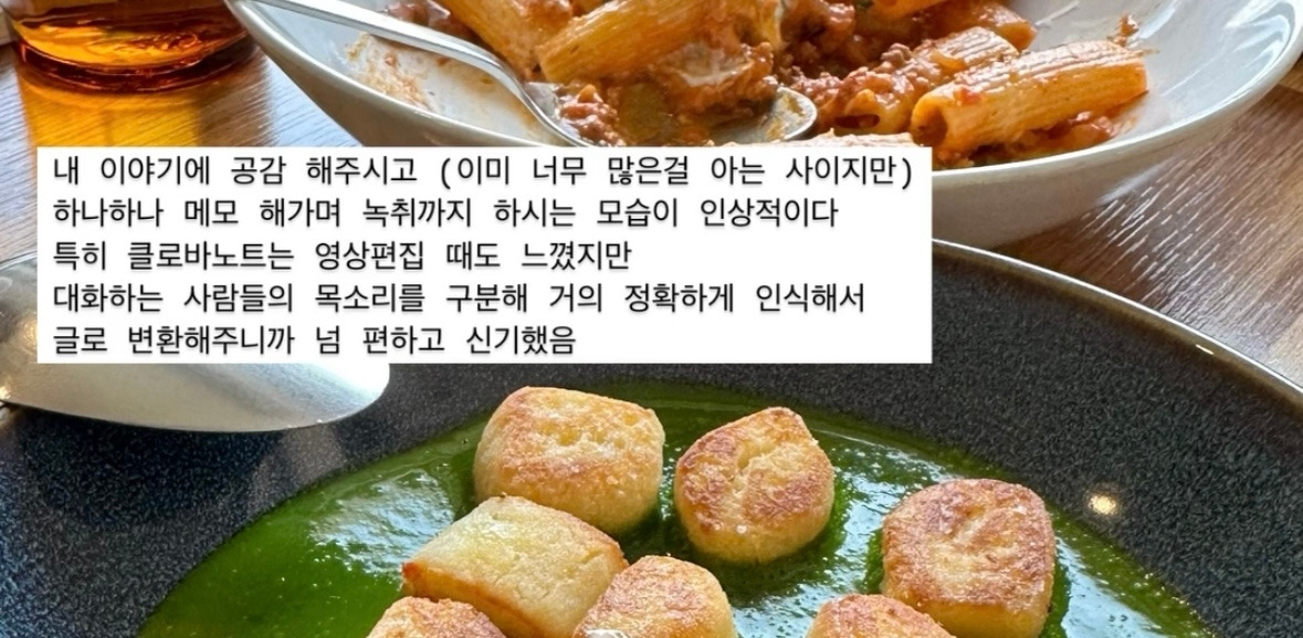 - 웃고 있어서 다들 잘 모르지만 내가 의외로 낯을 가린다. 그래도 할 말을 못 하는 건 아니지만 부끄러움을 엄청 타는데, 지난 11월부터 거의 매일 대화를 해서 그런지 처음 만났는데 불편하지 않았다.