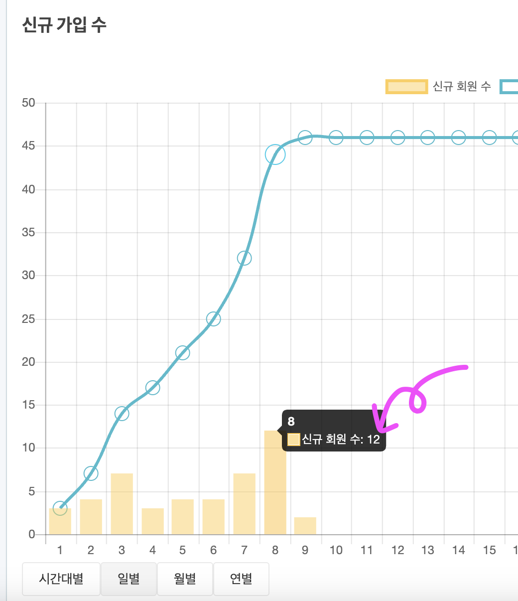 - 최고로 많이 가입한 날은 8명이었는데 어제 갑자기 12명이 가입해서 놀랐다.