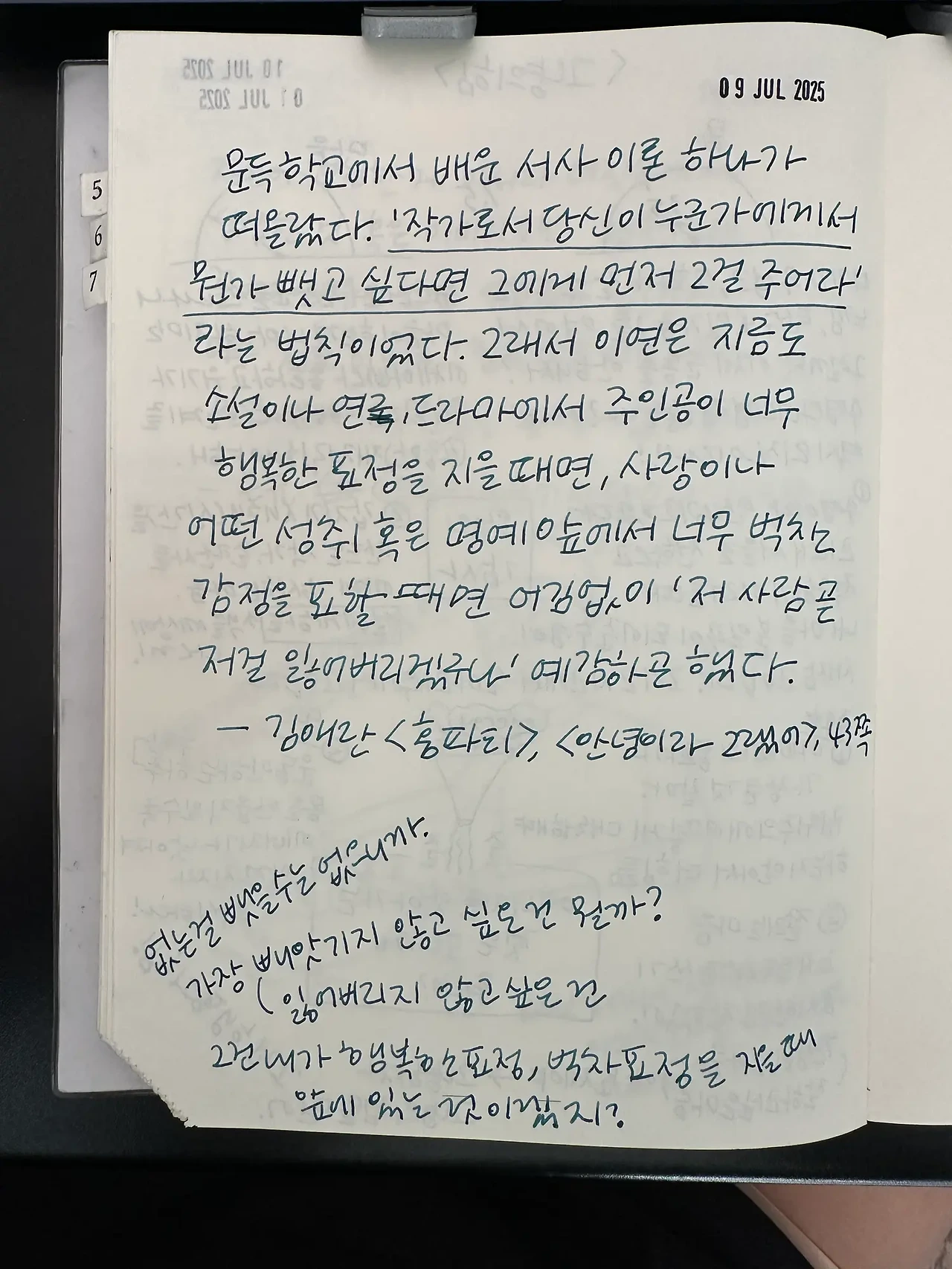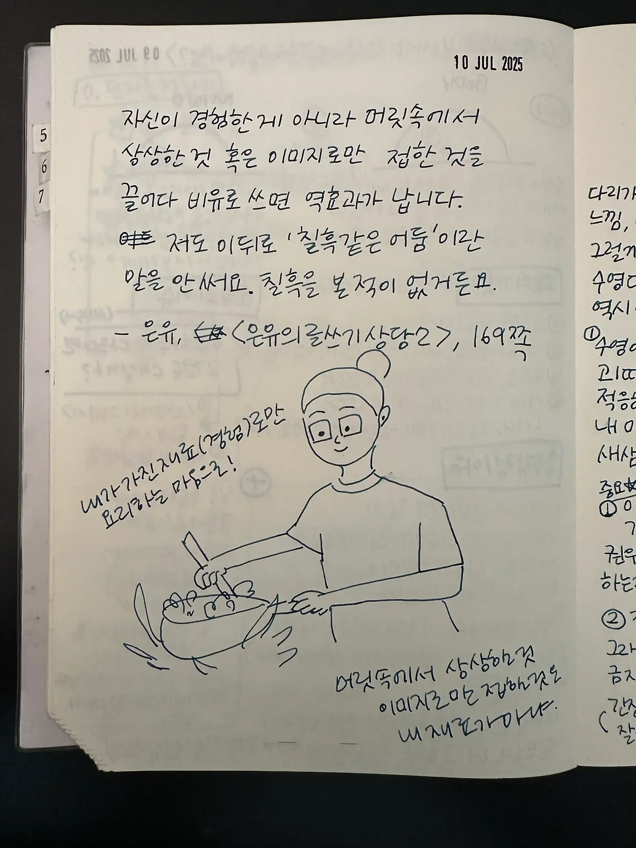 퇴고할 때 제일 많이 지우는 게 비유나 은유였는데, 왜 지우고 싶었는지 이제야 알겠네요.