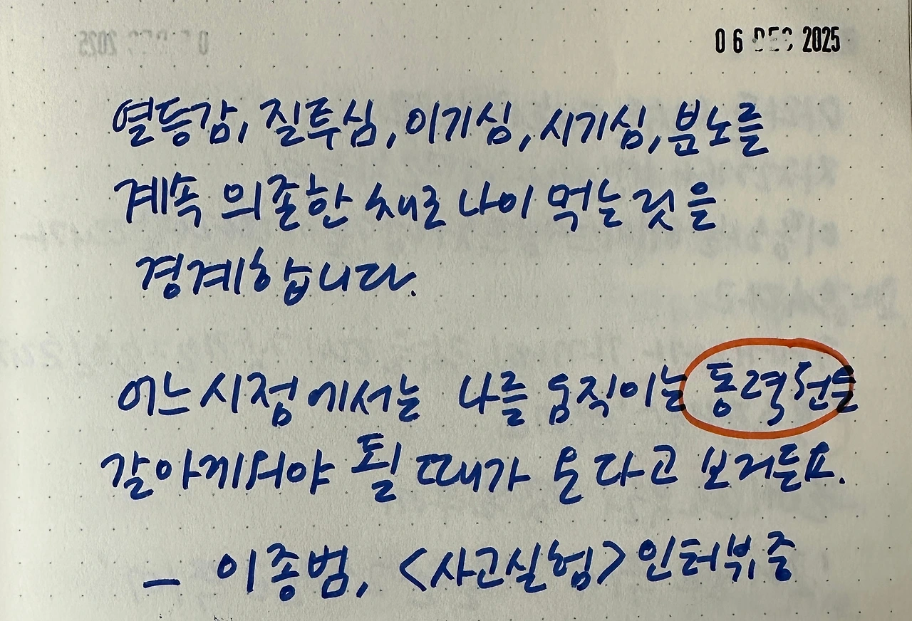 어느 시점에서는 나를 움직이는 동력원을 갈아 끼워야 될 때가 온다고 보거든요.