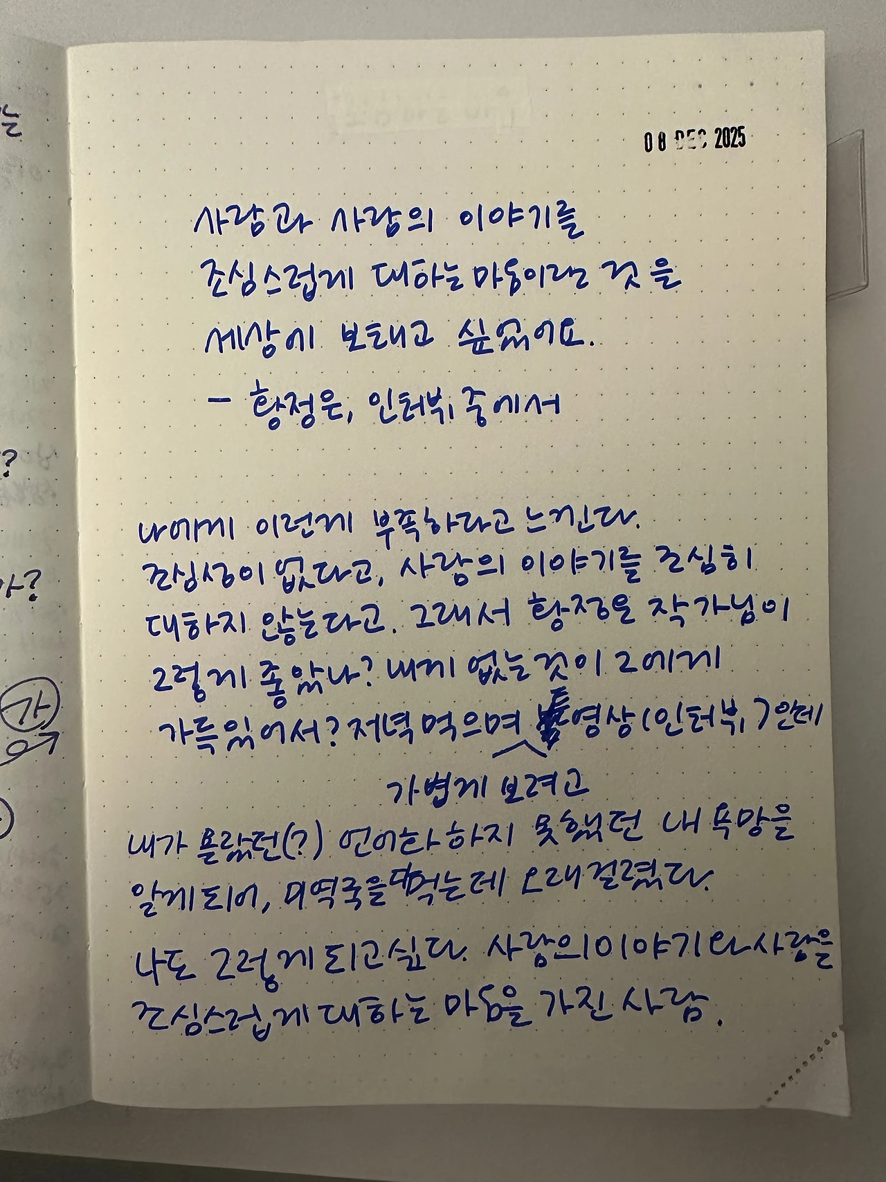 현시점 내 가장 큰 욕망. 조심스러운 사람이 되고 싶다.