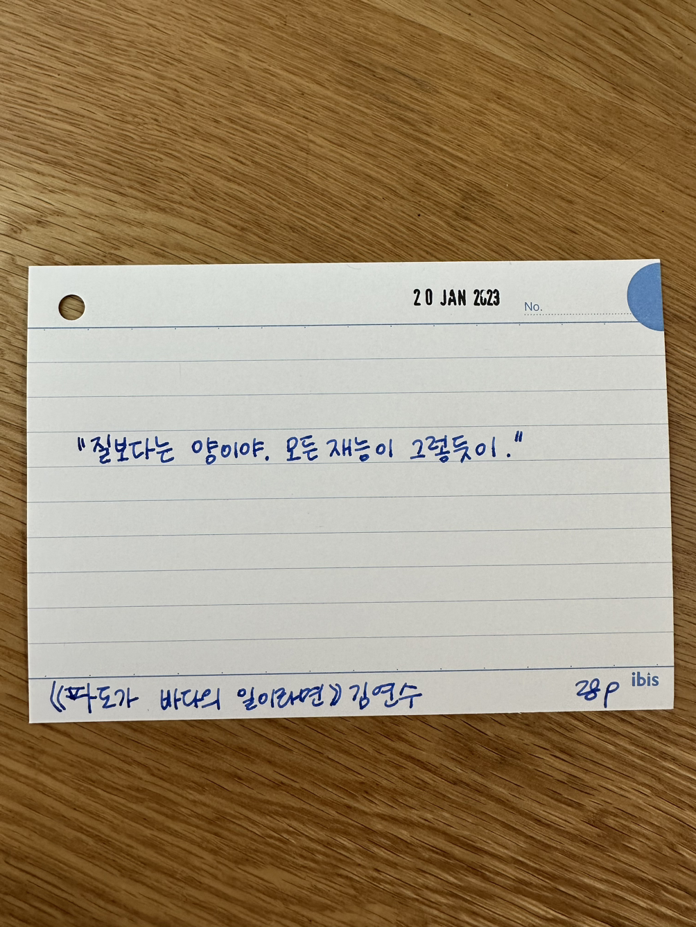 소설을 읽다가 그 맥락과 상관도 없는데 가슴을 베는 것 같은 문장을 만날 때가 있다. 단지 나는 소설 속으로 하나, 둘 문을 열고 들어가는 중이었다. 그러다 이 문장을 읽고 수많은 생각이 겹쳐서 잠깐 책을 덮고 이 문장을 썼다. 역시 재능의 영역에서는, 많이 하는 수밖에 없다는 기초적인 생각을 아직도 다시 배우고 또다시 배운다. 내가 친해지고 싶은 글쓰기도, 엄마처럼 시원하게 끓여내고 싶은 콩나물 김치찌개도, 더 물 흐르듯 하고 싶은 태권도 품새도, 일에 대한 더 전복적인 생각도 질로는 아직은 승부가 안나는 재능이라서, 지치지 않고 더 많이 해야 하는 것을 소설을 읽다가 별안간 생각한 날이었다.