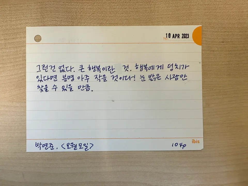 그런 건 없다. 큰 행복이란 것. 행복에게 덩치가 있다면 분명 아주 작을 것이다. 눈 밝은 사람만 찾을 수 있을 만큼.
