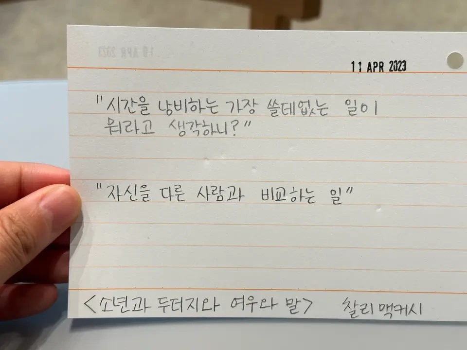 ”시간을 낭비하는 가장 쓸데없는 일이 뭐라고 생각하니? “ “자신을 다른 사람과 비교하는 일”