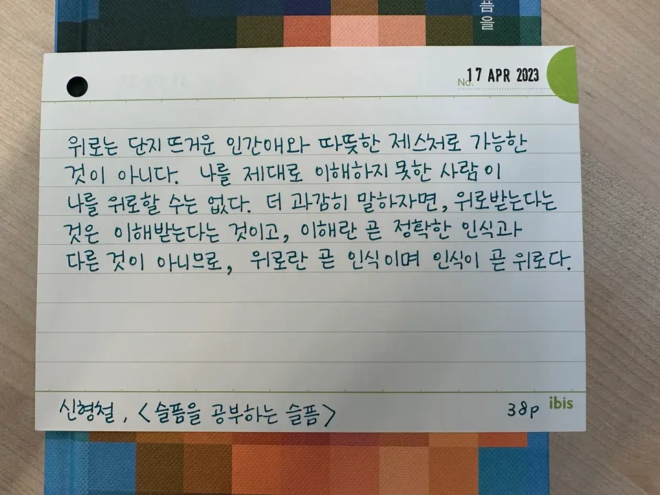 위로는 어렵다. 작가의 말처럼 뜨거운 마음만 가지고는 불가능하다. 왜 이렇게 어려울까 몰랐는데 이 문장을 읽고 비로소 알게 되었다. 내가 이해할 수 있는 상황을 겪는 이만 내가 위로할 수 있는 것이다. 정말 그렇다.