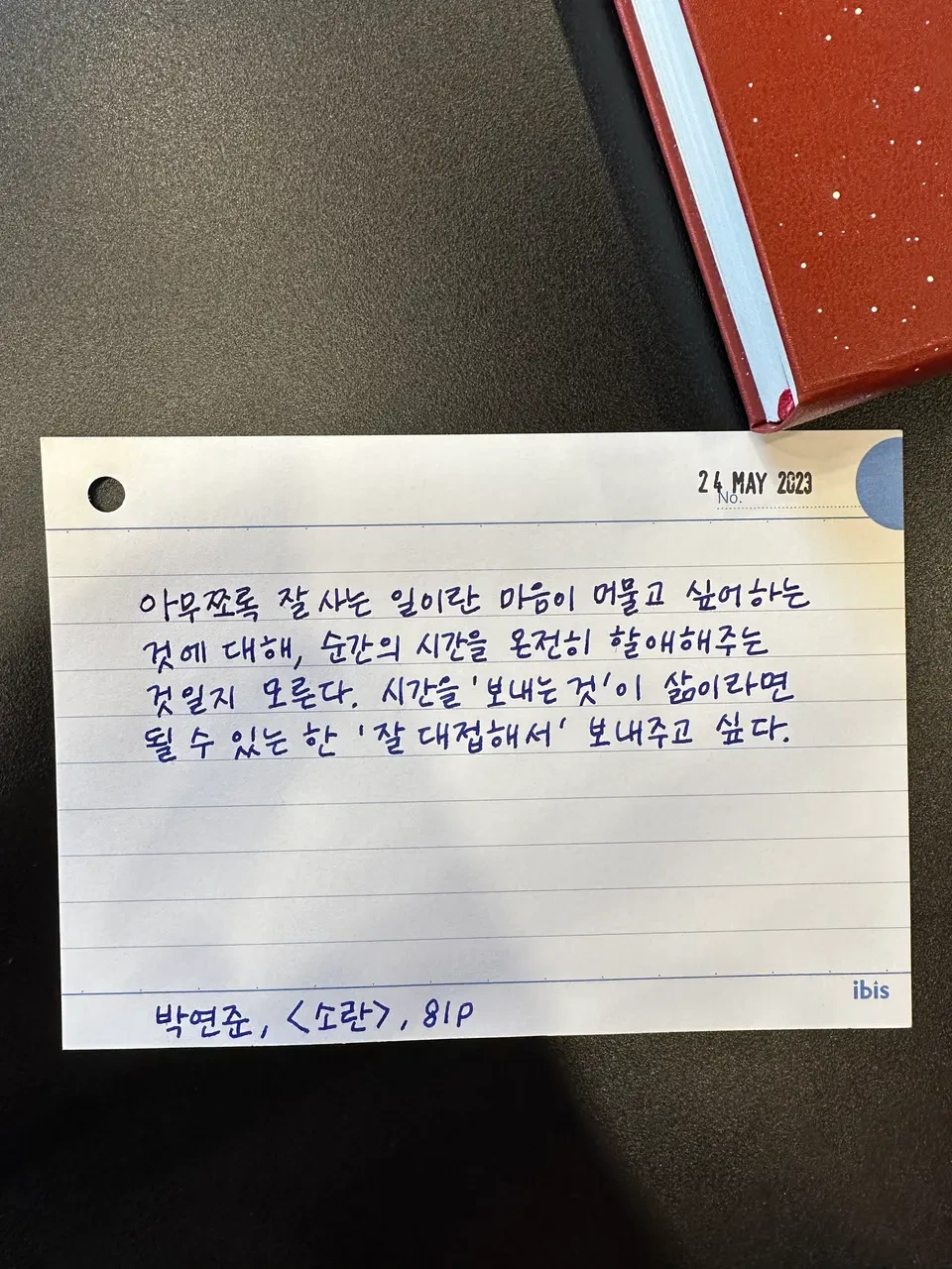 박연준 작가님은 마음이 머물고 싶어 하는 것에 대해, 시간을 온전히 할애해 주는 것일지 모른다고 하네요. 이렇게 생각해 본 적이 없어서 이 문장을 읽고 한참 생각에 잠겼어요. 그동안 잘 사는 일이란 대체로 내 마음을 억제하고 극기하면서 나와 싸우는 거라고 생각했거든요.