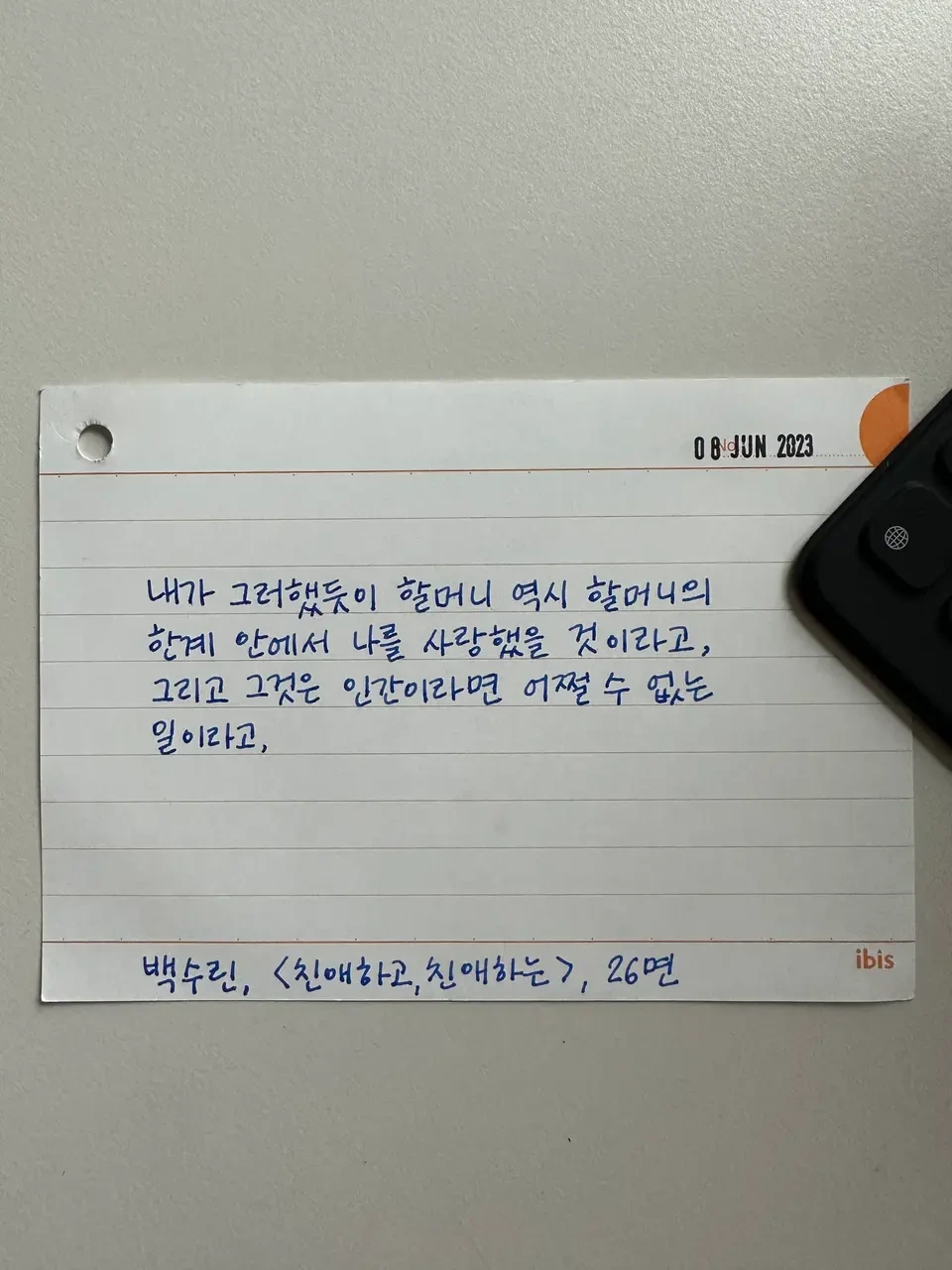 내가 그러했듯이 할머니 역시 할머니의 한계 안에서 나를 사랑했을 것이라고, 그리고 그것은 인간이라면 어쩔 수 없는 일이라고,