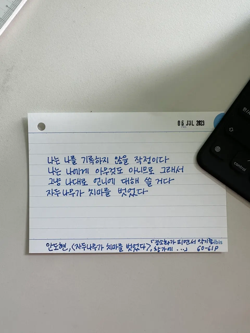 아무런 기대나 실망 없이 오늘 아침에도 시 한 편을 필사하다가 멈추었다. 너무 나에게 관심이 많은 것은 아닌지, 나는 주변에 얼마나 관심이 있는가? 내 동생에게, 내 친구에게, 내 부모에게, 내가 살고 있는 경제나 사회에 대해. 나는 나를 기록하지 않을 작정이다. 그냥 나대로 내 주변에 대해 쓸 거다.