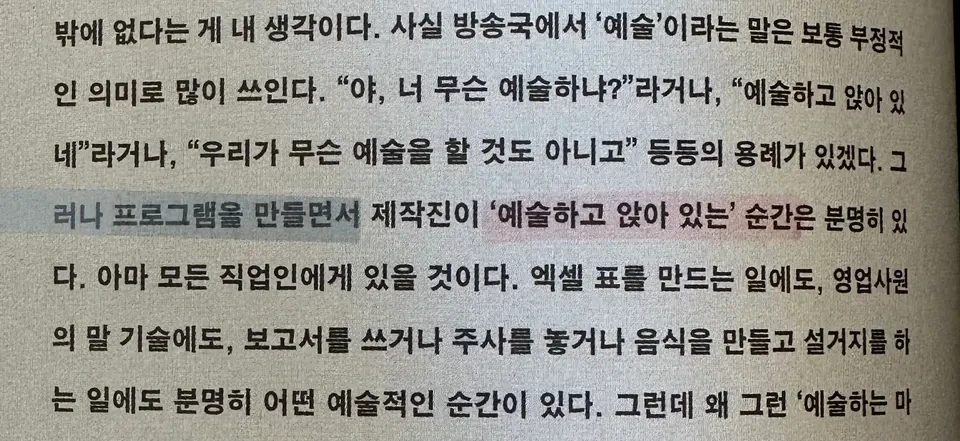 스스로 이런 생각 너무 자주 해서 이 책을 읽다가 격하게 공감했습니다. 플래그도 모자라 형광펜을 꺼내 쭉 그었습니다. 최근에 제가 예술하고 앉아 있던 순간들 입니다.