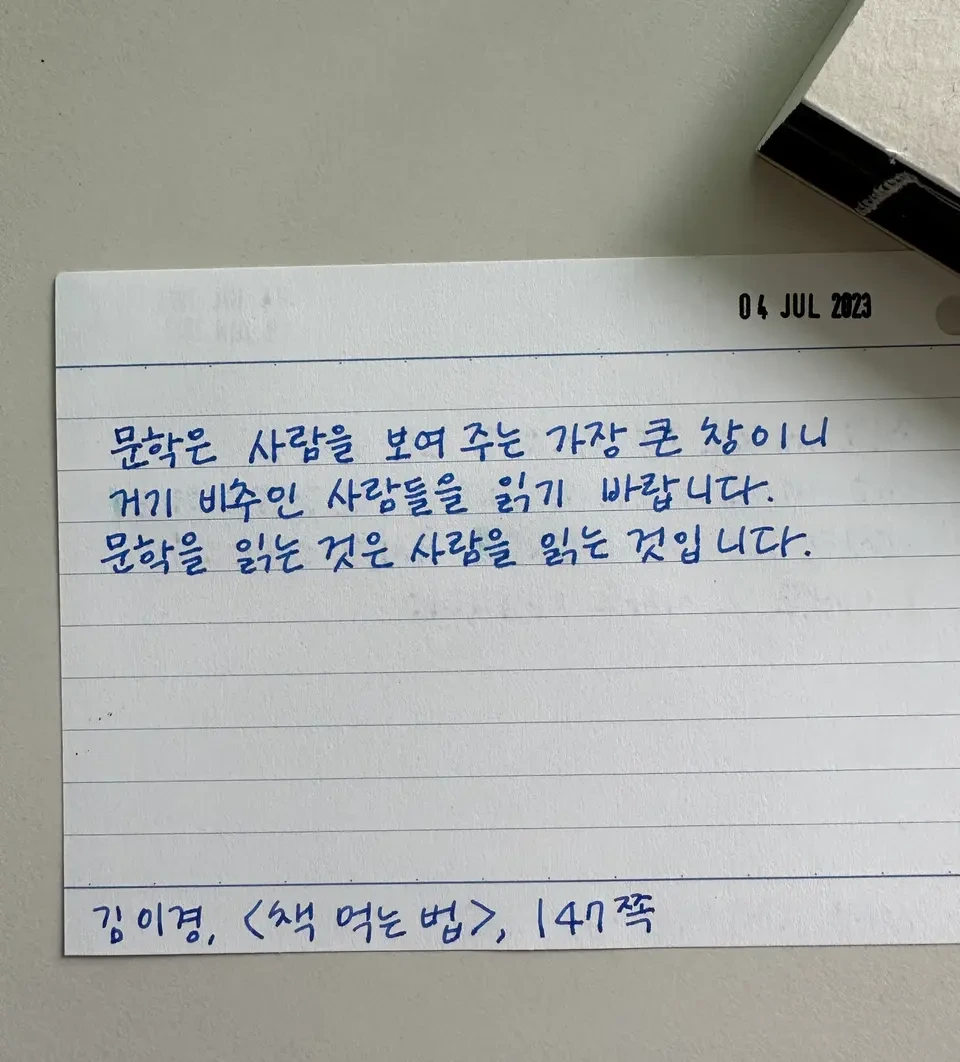 문학은 사람을 보여 주는 가장 큰 창이니 거기 비추인 사람들을 읽기 바랍니다. 문학을 읽는 것은 사람을 읽는 것입니다.