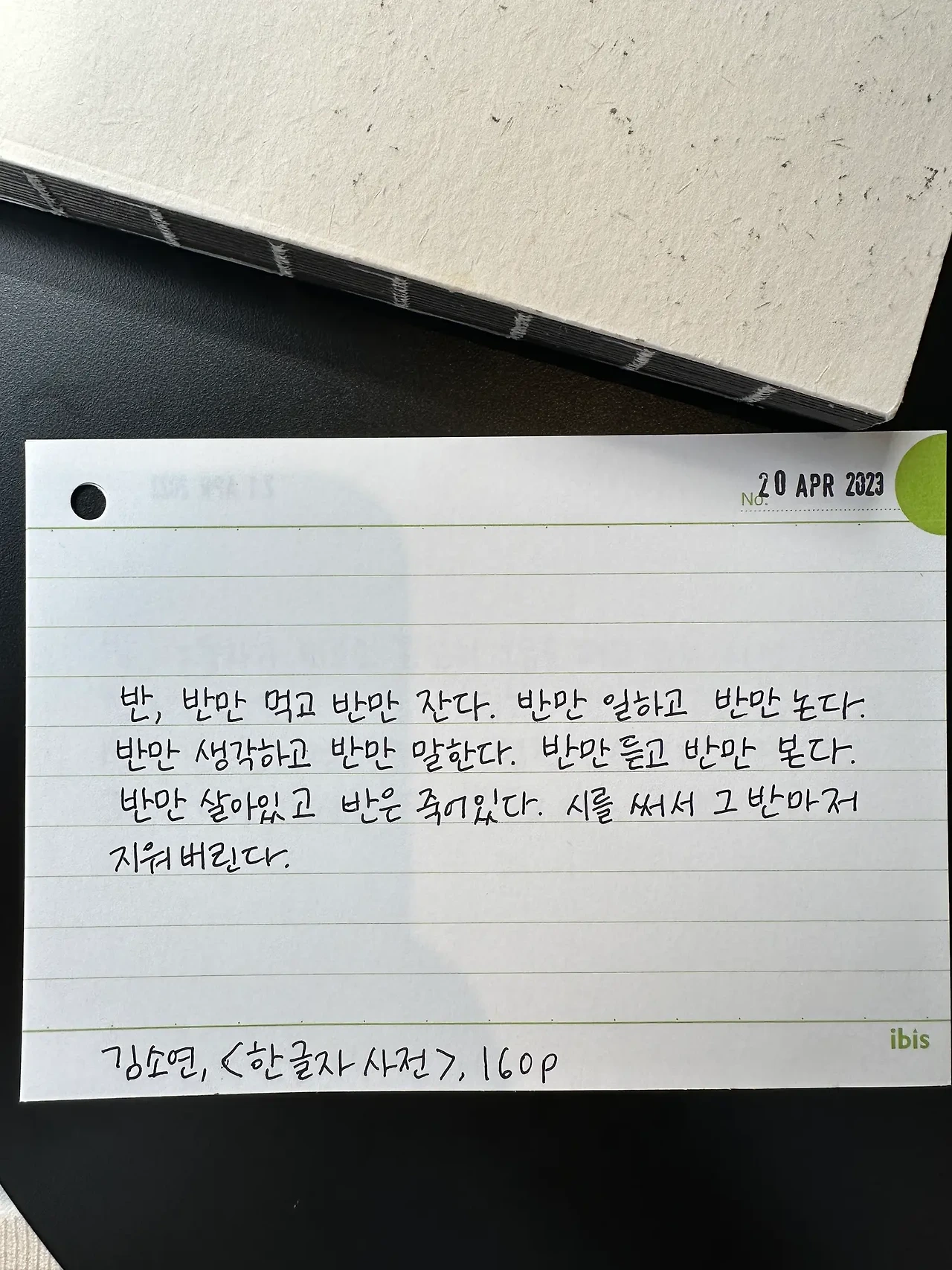 반. 반만 먹고 반만 잔다. 반만 일하고 반만 논다. 반만 생각하고 반만 말한다. 반만 듣고 반만 본다. 반만 살아있고 반은 죽어있다. 시를 써서 그 반마저 지워버린다.
