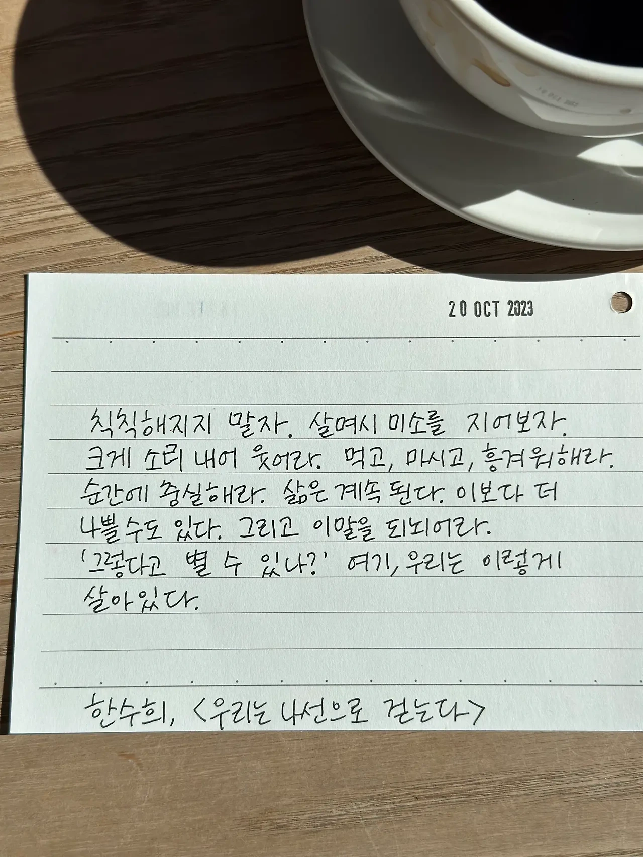 오늘 아침 2개월 된 딸을 돌보며 피곤으로 칙칙해진 내가 다시 이 문장을 꺼내 보고 다짐한다. 칙칙해지지 말자. 이 문장은 앞으로도 몇 번이나 더 나를 구해줄까.