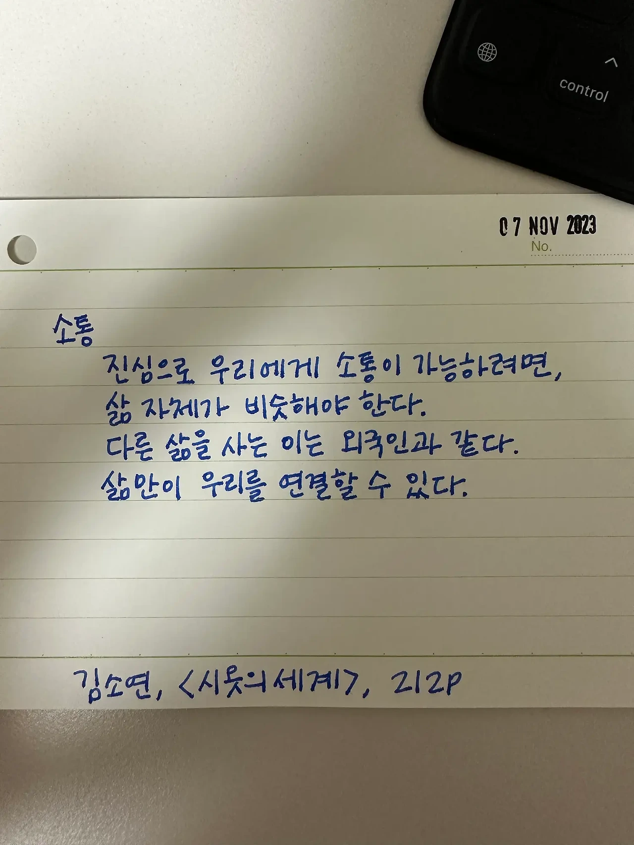 소통. 진심으로 우리에게 소통이 가능하려면, 삶 자체가 비슷해야 한다. 다른 삶을 사는 이는 외국인과 같다. 삶만이 우리를 연결할 수 있다.