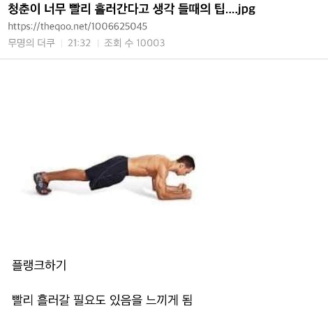 계속해서 하다보니 점차 바로잡히는 기분이 들었다. 허벅지 근육이 생기면서 엉덩이를 뒤로 뺄 수 있는 힘이 생긴 것이다. 그때가 하루 스쿼트 10개씩 3세트에서 30개씩 3세트까지 했었던 때였다. 스쿼트를 한 날은 힘들어서 다른 운동은 많이하지 못했는데 이 때 플랭크라는 것을 알게되어 처음으로 시도해봤던 것으로 기억한다. 역시나 힘들었다.