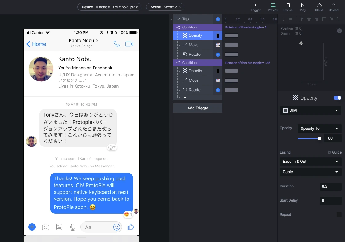 Protopie Studio에서 동작하는 것을 Protopie APP에서 작동할 수 있도록 지정