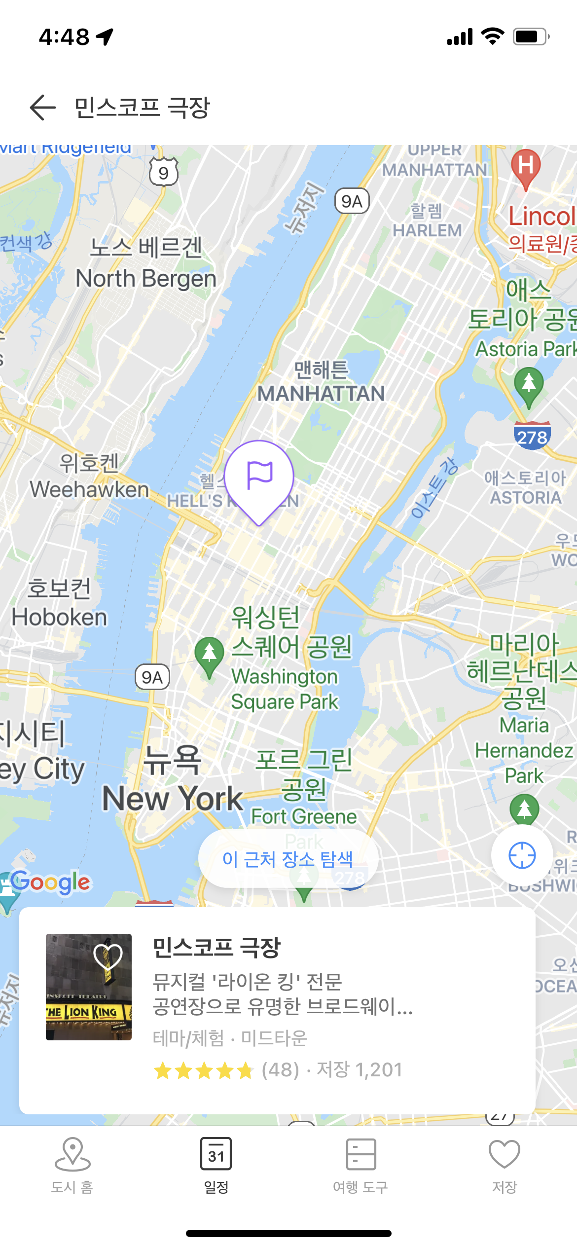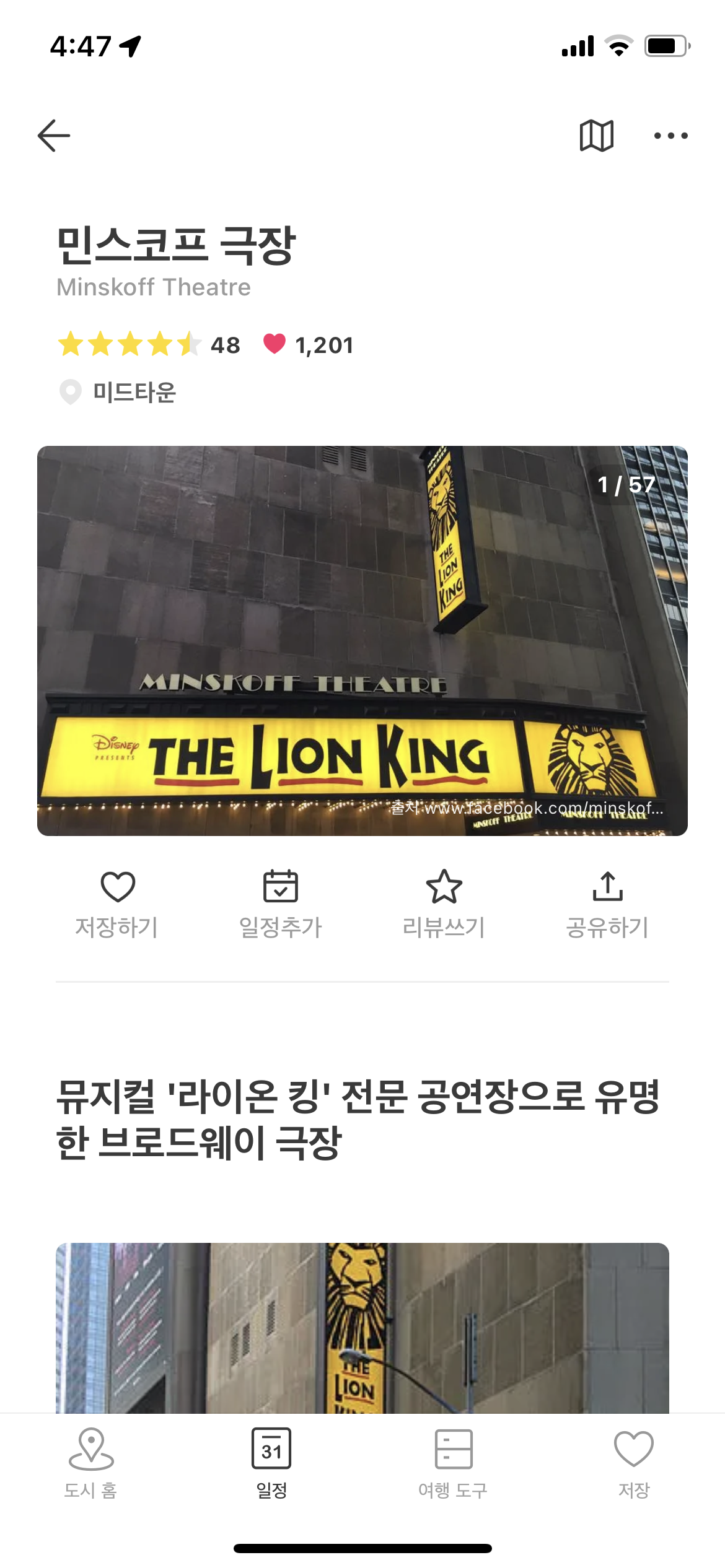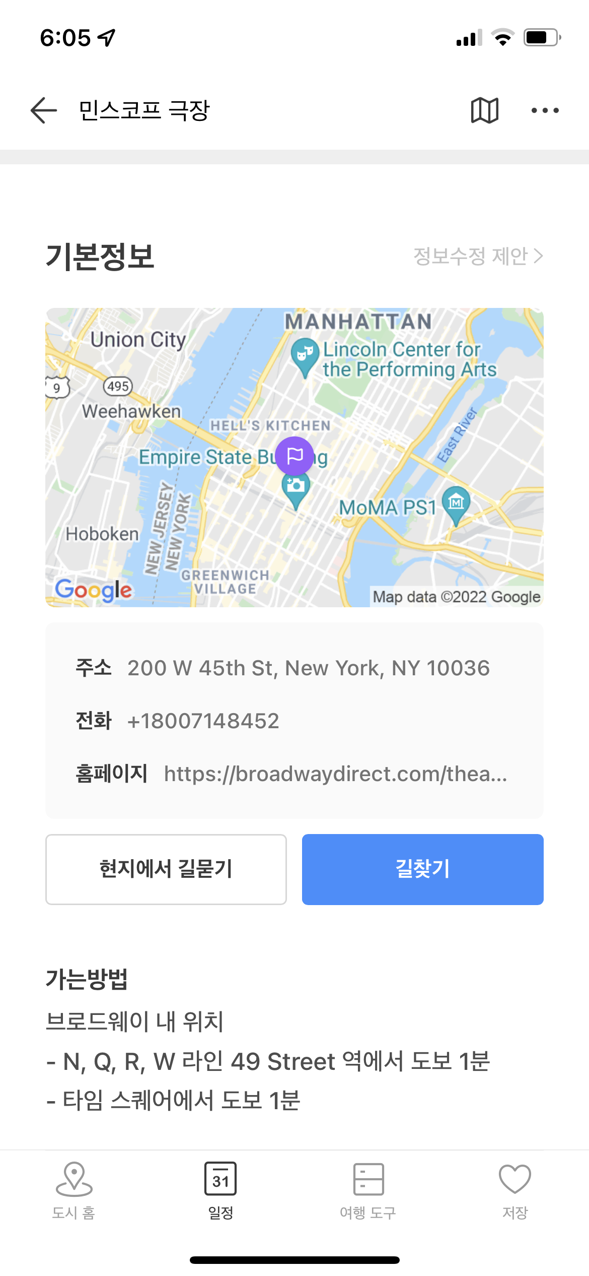② 민스코프 극장에 대한 장소 정보 확인