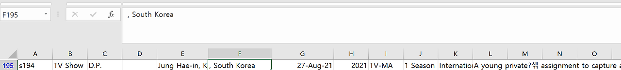 그리고 놀라운 오류(?)를 발견했다...! 첫 번째는 country의 필드 값이 없는 항목이 있다는 것, 두 번째는 데이터셋에 아예 포함되지 않은 작품이 있다는 것이었다. 한마디로 데이터 무결성(Data integrity)이 확보되지 못했다는 거다.