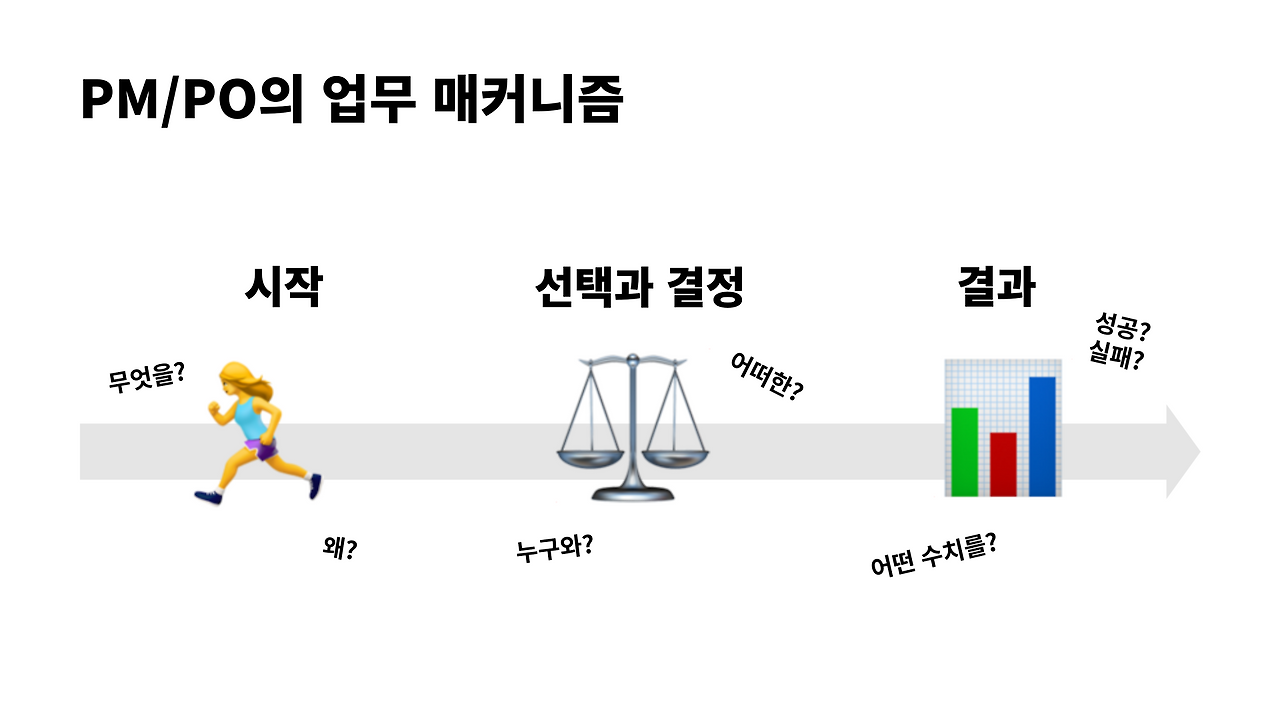 PM/PO는 무엇을 왜 시작했으며 그 과정에서 어떤 결정을 내렸고, 성공 여부를 어떻게 수치로 판단했는지 대답할 수 있어야 한다.