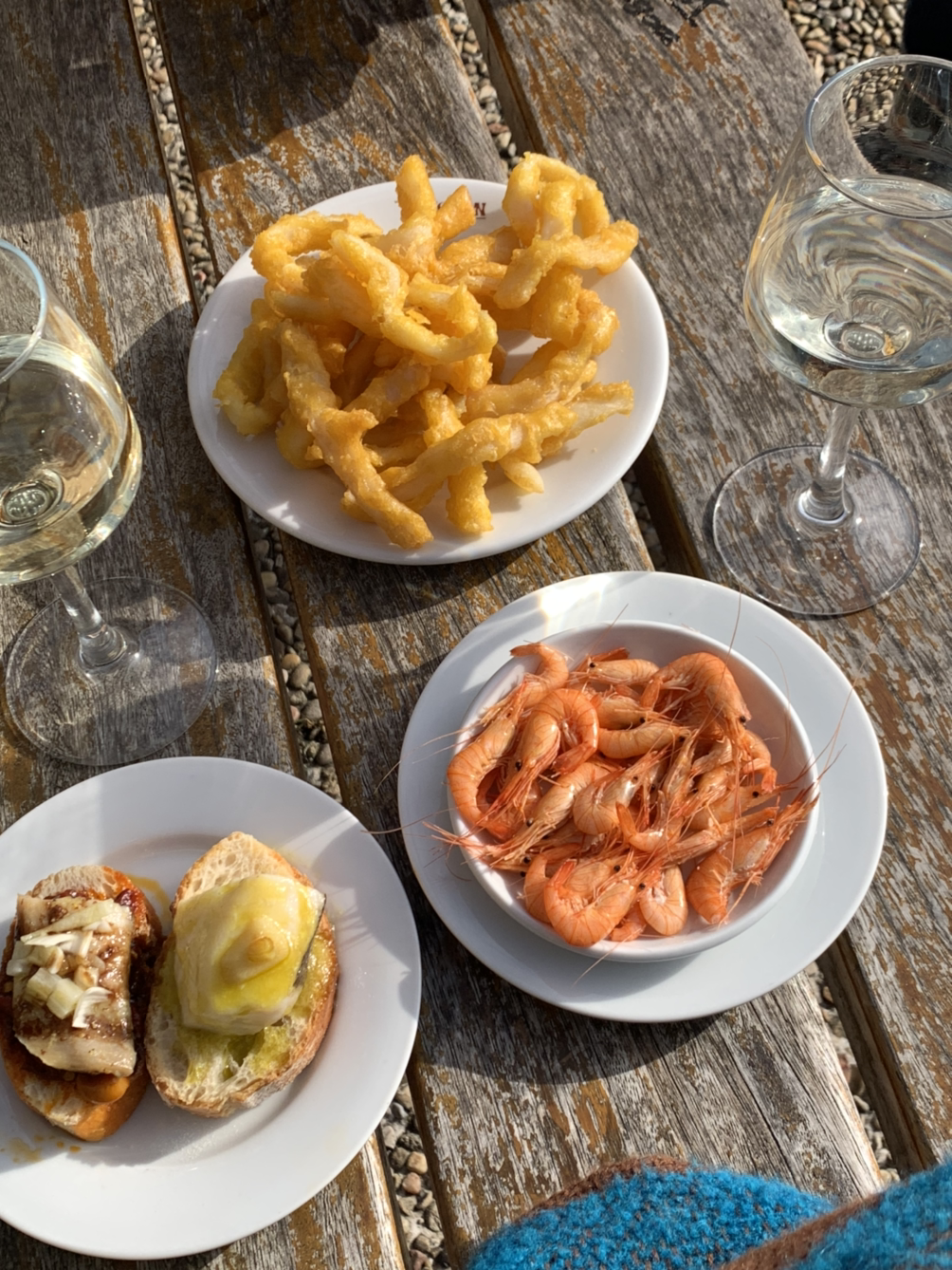 오늘도 해가 쨍쨍한 창밖의 날씨를 확인하고 남자 친구에게 라바스를 먹으러 가자고 제안한다. 바에 도착하니 우리와 같은 생각을 가진 사람들로 이미 야외테이블은 북적거리고 있으며 카운터에서는 라바스의 주문을 쉴 틈 없이 주방에 넣고 있다. 갓 튀겨져 나온 라바스 한 접시와 차콜리, 핀초와 작은새우(키스키야)까지 주문해서 우리는 북적거리는 야외테이블대신 조금 떨어진 곳의 벤치로 향한다. 눈앞에는 햇빛에 반짝이는 바다가 펼쳐져있고, 파도소리가 들려온다. 한창 뜨거운 3시의 태양 아래 양반다리로 앉아 라바스한점, 차 콜리 한잔을 몸에 넣어주니 그저 모든 근심과 걱정도 사라지고 “아! 너무 좋다!”라는 말만 쉼 없이 터져 나온다.