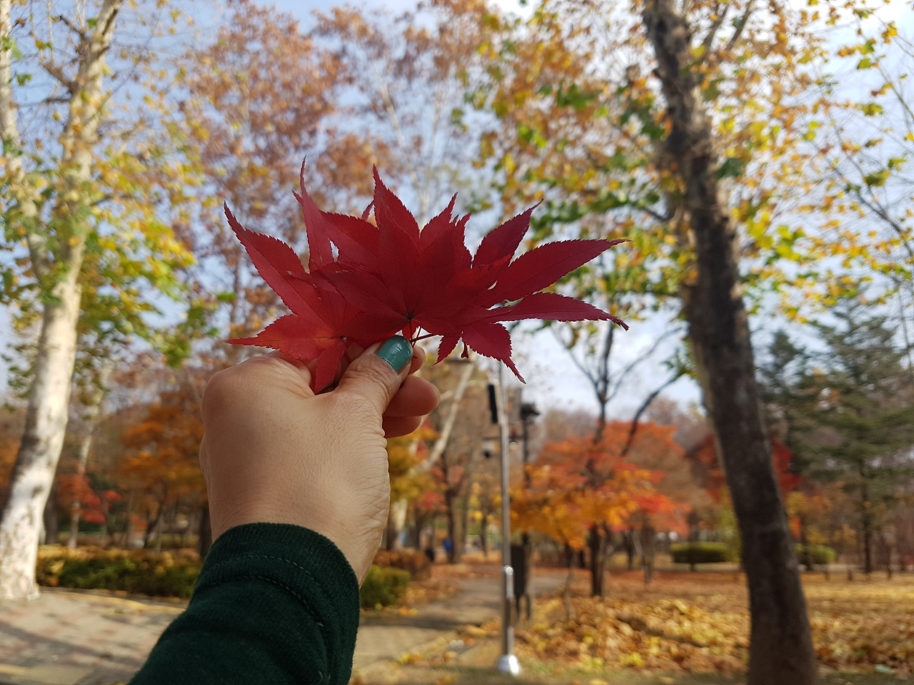 물들기 시작한 노란 색부터 붉어지는 붉은 잎까지..줍기 시작햇습니다.