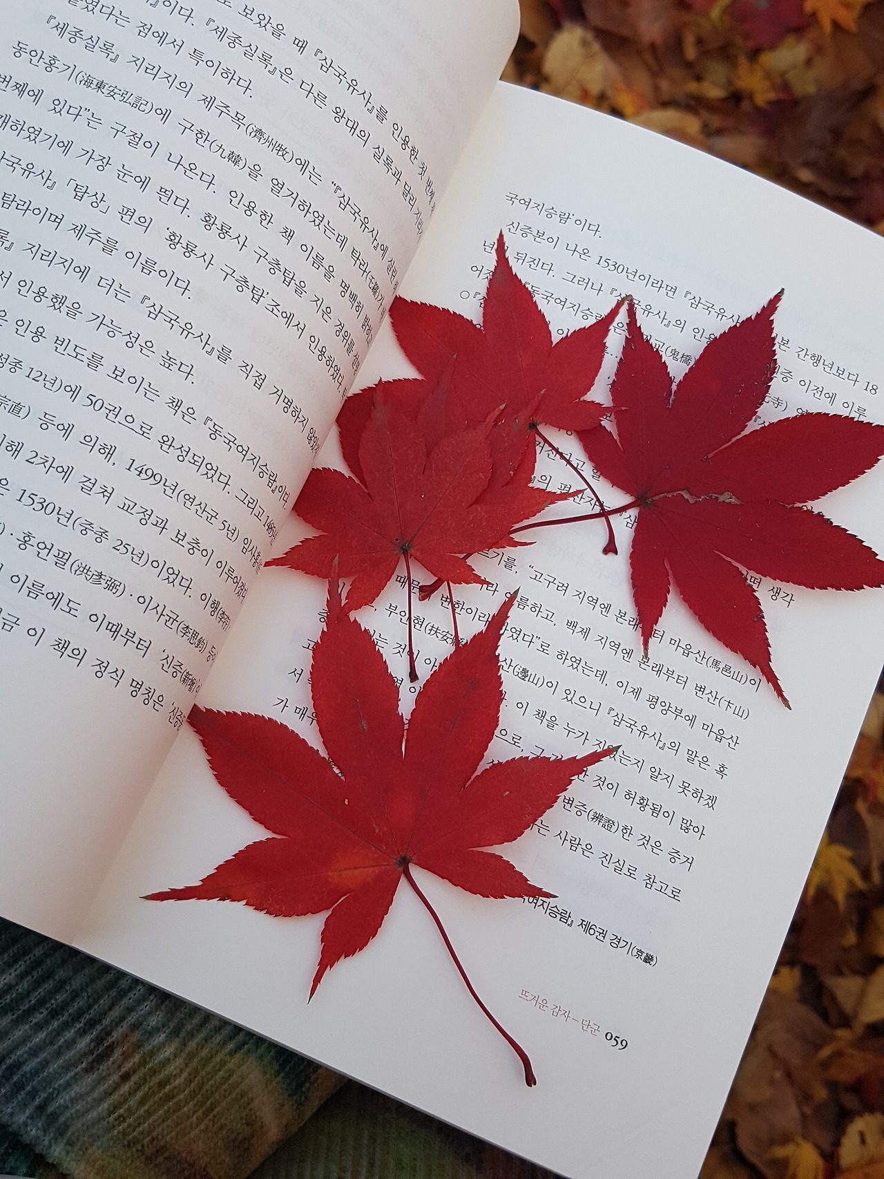 그렇게 엄마 몫까지 주워서 책 사이에 끼웠습니다..