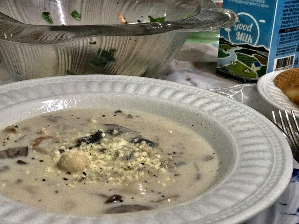 9월의 일본어 집밥♡ 오늘의 주제는 버섯 백만 송이 천만 송이 갖가지 버섯 상큼한 사과 샐러드, 버섯과 나물 맛나던 버섯볶음 고급지고 향이 부드럽고 달콤하던 귀한 티, 몸도 맘도 따뜻해지는 디저트 배숙 북해도에서 온 빛 예쁜 샴페인 손 많이 가고 에미리샘의 귀한 생선살 소보로♡ 행복의 전구가 팡팡 켜지던 행복한 경험 좋은 사람들과의 맛있는 식사 이 보다 더 좋을 순 없다!!!