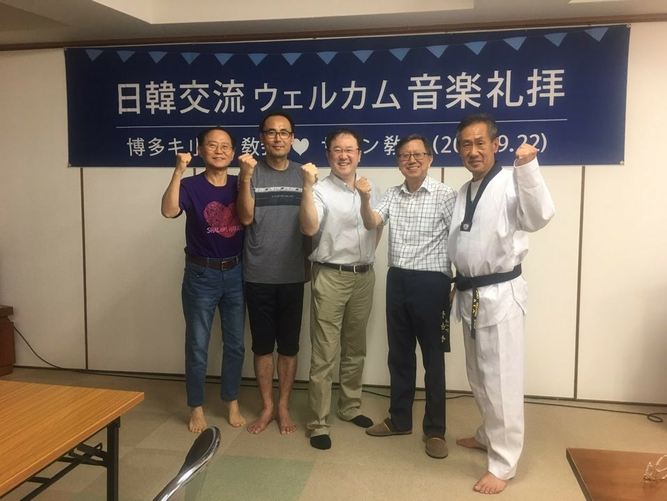 깊은 신앙심으로 자녀를 키워내신 어머님과 그 다님. 그리고 손녀. 간증을 은혜롭게 해주셨던 이시은 집사님. 사회에서의 크리스천으로서의 자세로 고민하는 하카 타의 미래 두 청년들. 그리고 이번 선교의 숨은 공로자 염 선교사님 , 그리고 70 평생의 신앙을 고백하신 하카타 교회의 권사님 ( 왼쪽부터 )