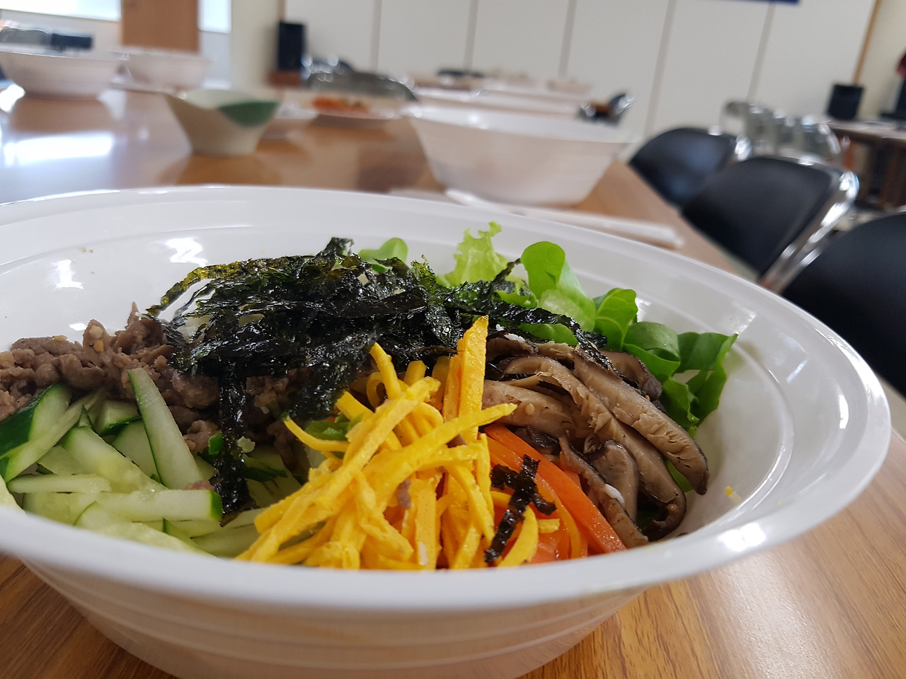 마치 천국에서와 같은 기쁨과 은혜가 가득한 주일 예배 뒤에 이어진 나눔의 시간은 먼저 준비한 약고추장 지단 비빔밥으로 시작 되었습니다.