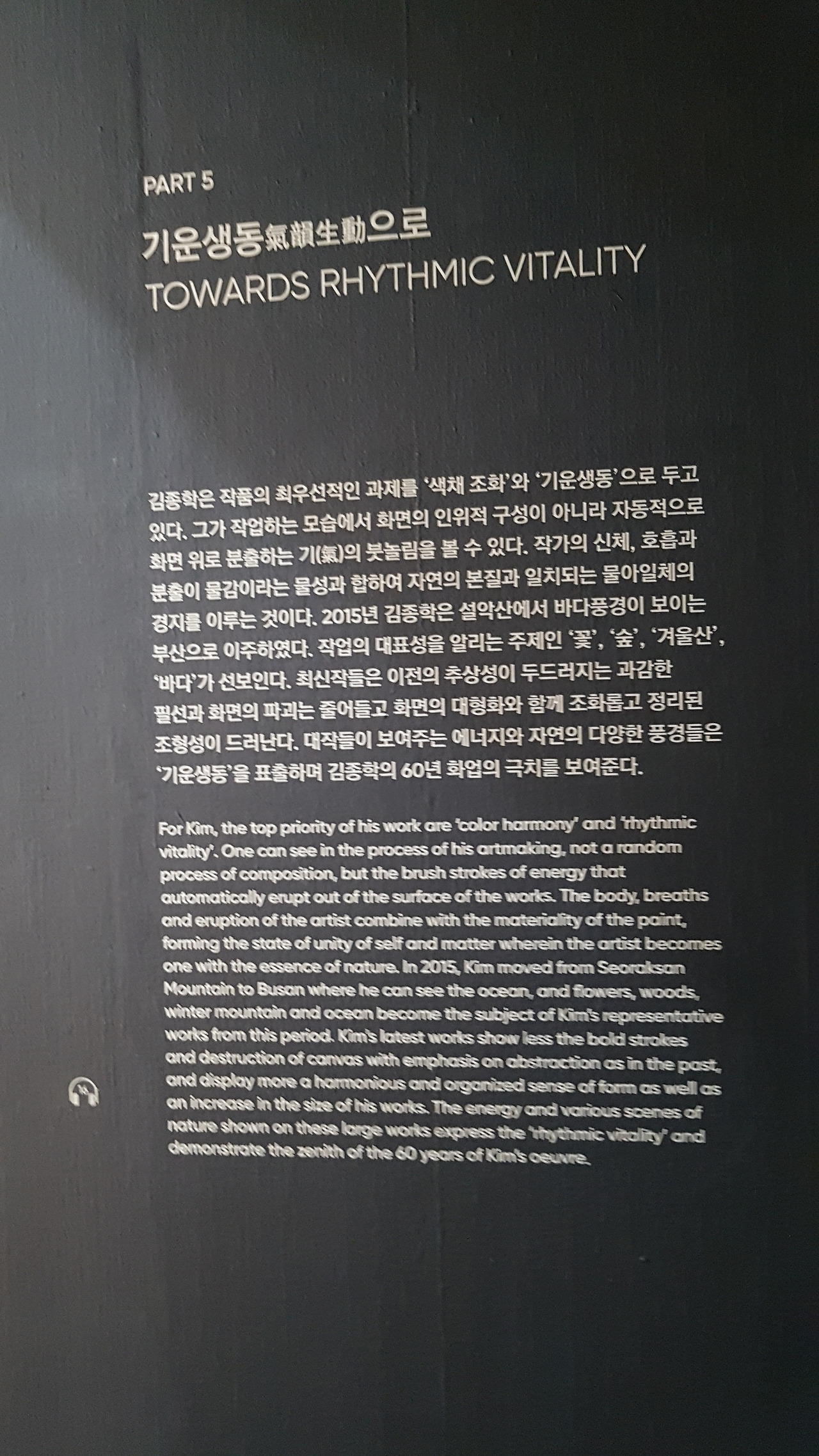 딸에게 보내는 편지가 유독 인상적이었던 전시회.. "자식들 부끄럽지 않게 100점만 그리고 죽자.. 설악산 자연을 그렸다" 또한 묵직한 힘의 붓놀림에 감탄한... 원로화가 김종학 그의 인생의 붓놀림을 보다....