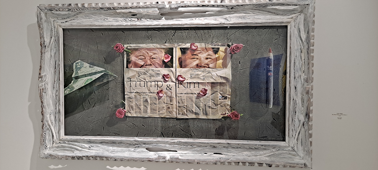 세기의 인물들이죠. 도널드 트럼프와 김정은. 그림으로 보니 나름 반갑더라고요 ^^ 2018년 북미 싱가포르 회담을 그린 듯 보입니다.